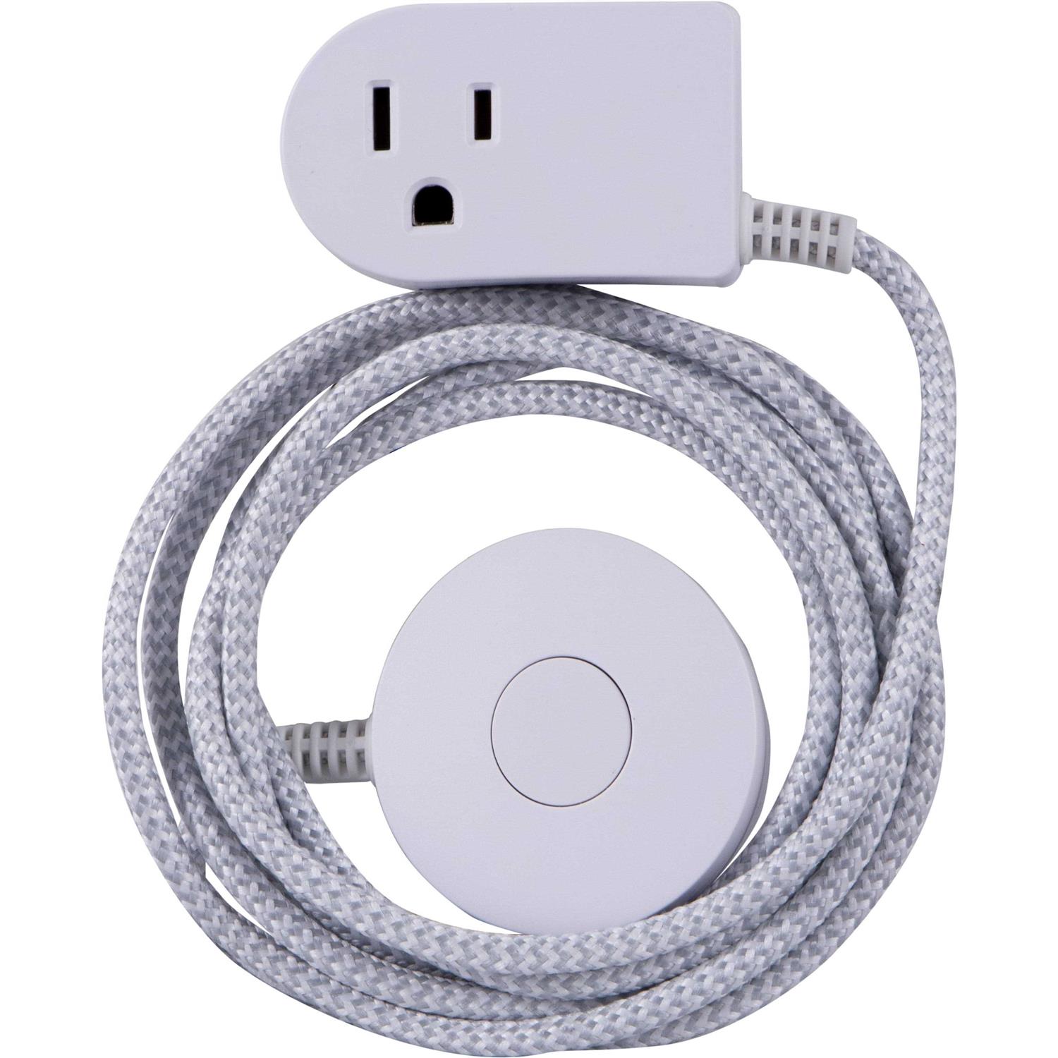 The Cordinate Tabletop Switch is unlike any other extension cord on the market. Theres no need to strain to reach switches in tight spaces or move furniture to access outlets. Simply connect your lamp, seasonal lights, Wi-Fi router or other electronics to the three-prong plug, extending an ON/OFF power button up to 6ft. Draw zero power from your devices in the OFF setting and save money by only using your electronics when you need them. As a bonus, the white and gray braided fabric cord resists tangles, reduces fraying and comes in a complementary chevron pattern sure to accentuate existing dcor. The unique side-angle design of the plug means this extension cord doesnt block your other outlet. The power switch can be placed securely on any flat surface thanks to its slip-resistant base or mounted to a wall using the keyhole slot on the back. With the power button positioned where you need it, turn your devices on or off with a simple tap. Make the switch to the Cordinate Tabletop Switch.
