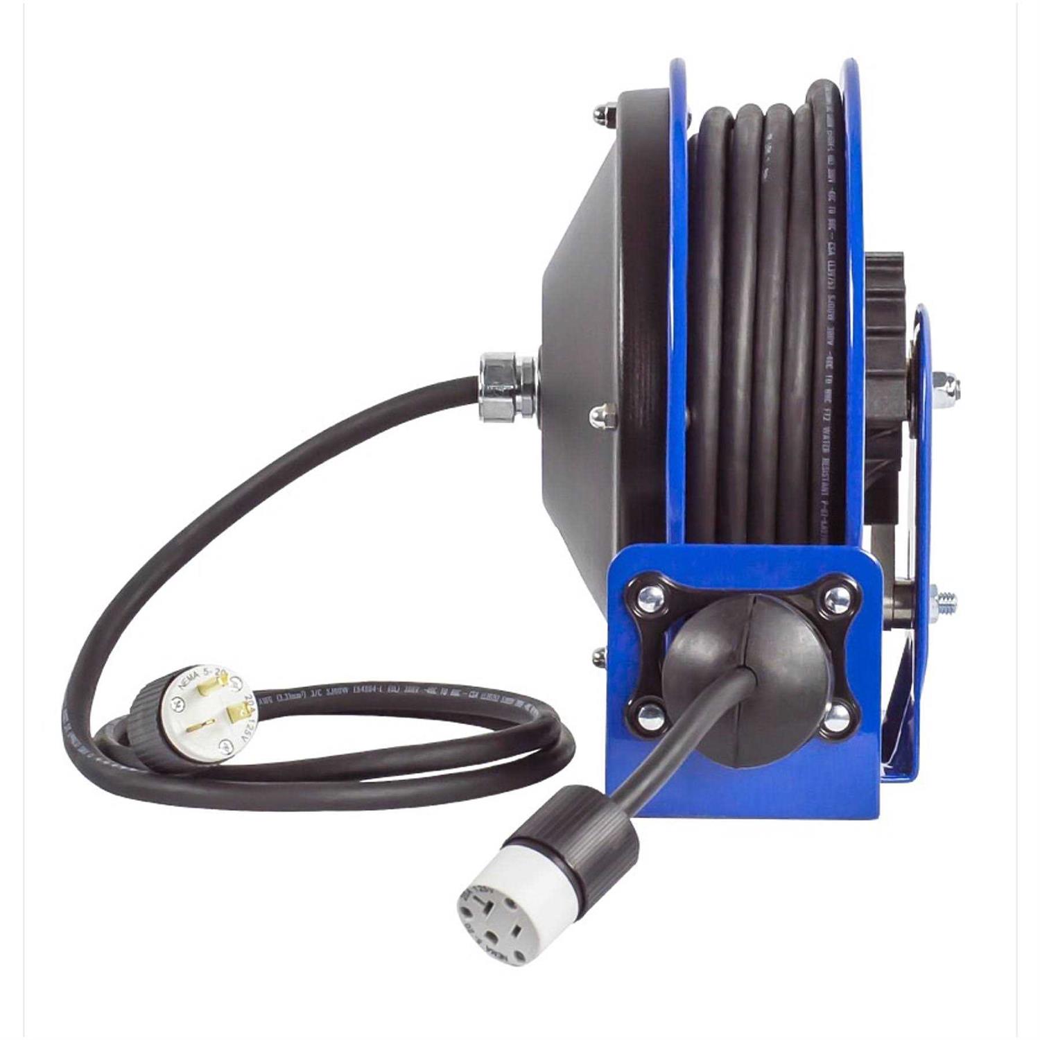 Compact efficient heavy duty power cord reel, 12 ga. pc10 is built modeled after the lg “little giant” series. This reel is compact & efficient heavy duty power cord reel, extremely lightweight and compact. Features coxcompositetm hub made of high strength composite w/ self-lubricating bronze bearings & coxcompositetm grommet.