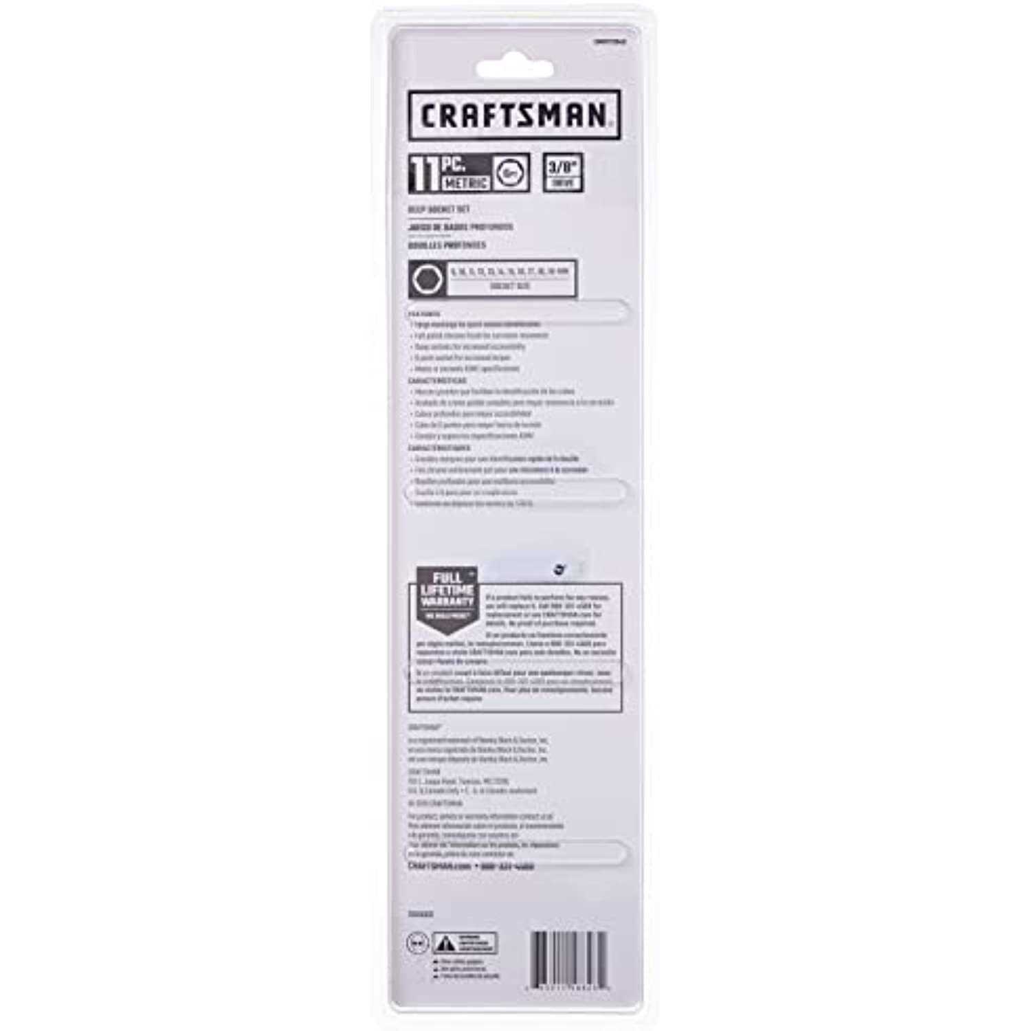 Craftsman 3/8 in Drive Metric 6-Point Deep Socket Set – 11 PC