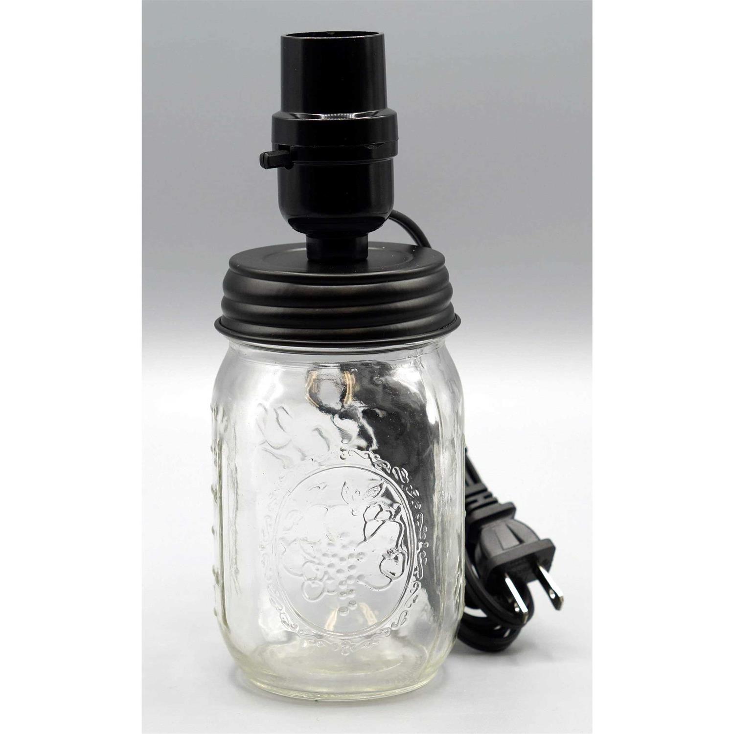 Creative Hobbies DIY Mason Canning Fruit Jar Lamp Making Kit Is Pre-Wired and Easy to Use – Black Color Lid & Socket Great for Lamp Conversion