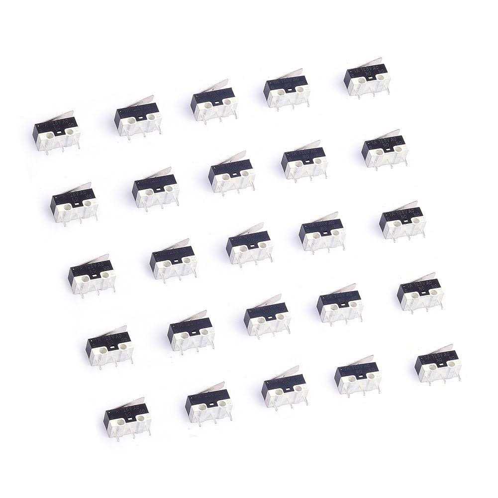 Action Type: Momentary Material: Plastic and metal Color: Black and white Package Includes: 25 AC 1A 125V 3Pin SPDT Limit Micro Switch Long Hinge Lever Features: Contact Type: SPDT Voltage and Current: AC 125V 1A Quantity of Pins: 3 Pins Size of the Swich: 12. 6 6. 5 5. 7mm/ 0. 49 0. 26 0. 22in (L*H*W) Size of Lever Arm: 13. 5 x 4mm/ 0. 53 0. 16in (L*W).,Hardware > Tools,Qianxin