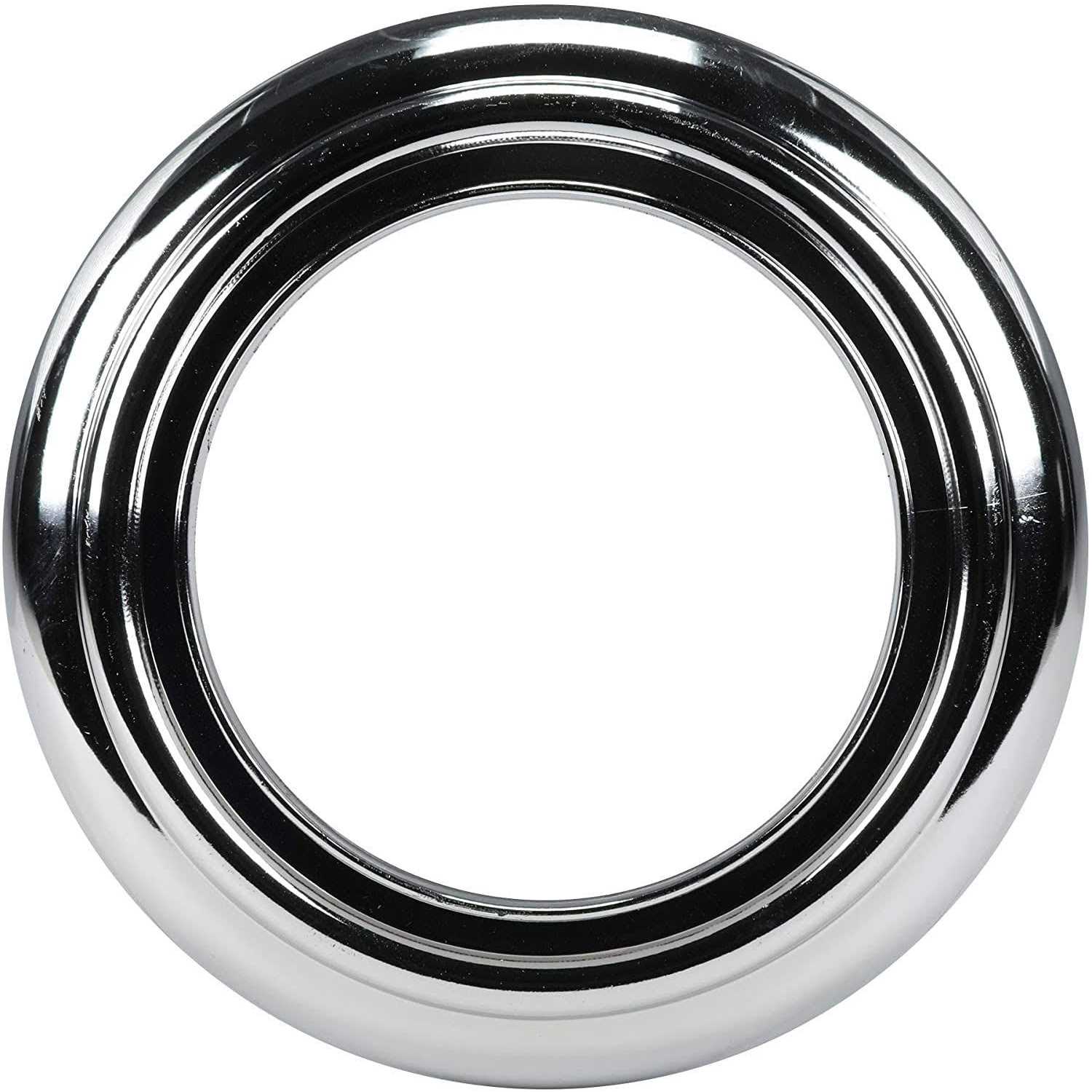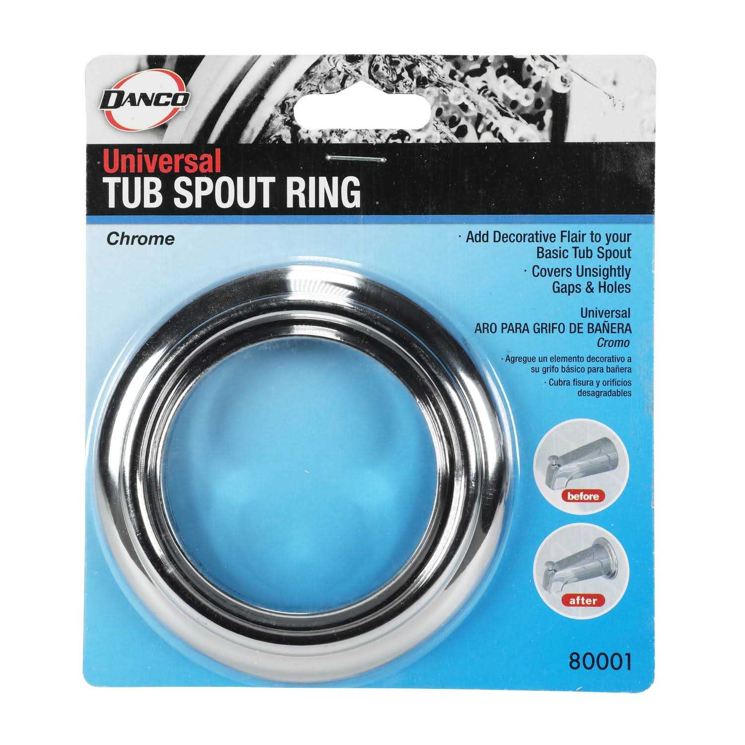This Decorative Tub Spout Ring features durable plastic construction with an attractive chrome finish. It has a 2-1/2-inch I.D. with a 3-3/4-inch O.D. This tub spout ring is sure to add a decorative flair to your basic tub spout.