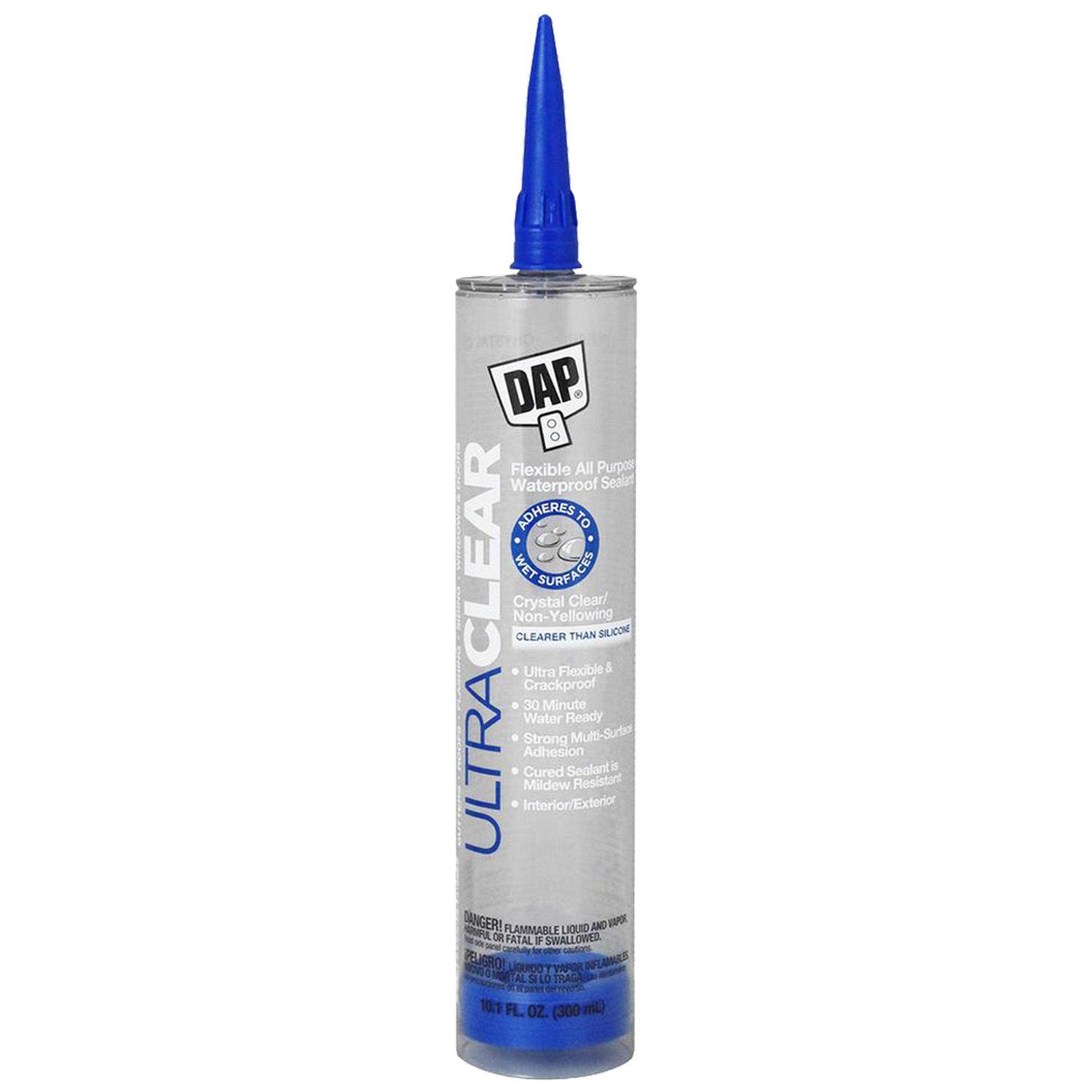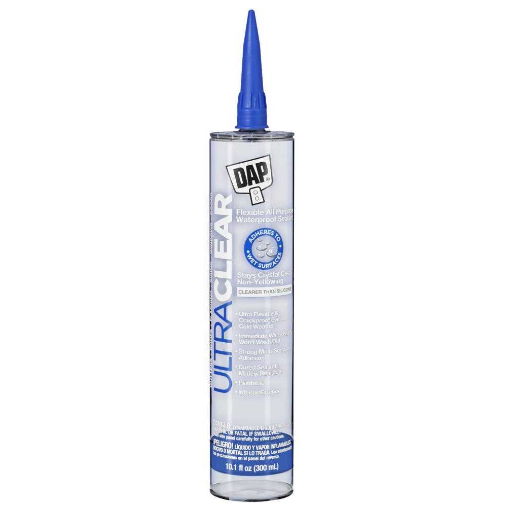 Dap Ultra Clear is a high-performance, clear sealant that is sure to be pg great use to you. This mildew and waterproof sealant offer excellent all-weather application and adhesion, even on wet surfaces. In addition, the clear silicone sealant stays crystal clear and permanently flexible. Dap sealant has a coverage area of 55 linear feet at 3/16 inch diameter bead linear feet. Use this multi-surface clear silicone adhesive for indoor and outdoor applications.
