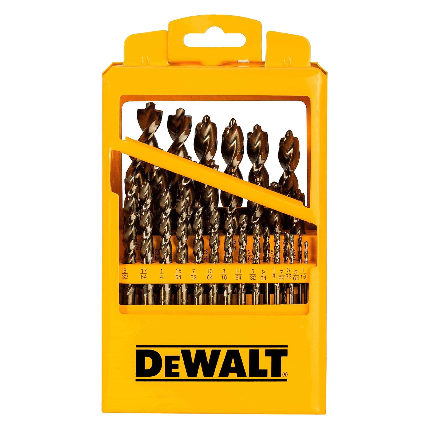 Drill Bit Set – For Accurate Drilling Make a sturdy choice for drilling with the DeWalt pilot point drill bit set. Featuring 29 pieces of pilot points, this drill bit set offers precise and clean drilling. The provision of tapered webs avoid breakage. Equipped with no-spin shanks, this drill bit set securely locks the chucks and reduces hassles. The marked sizes and sturdy booklet box for storage enhances user convenience.
