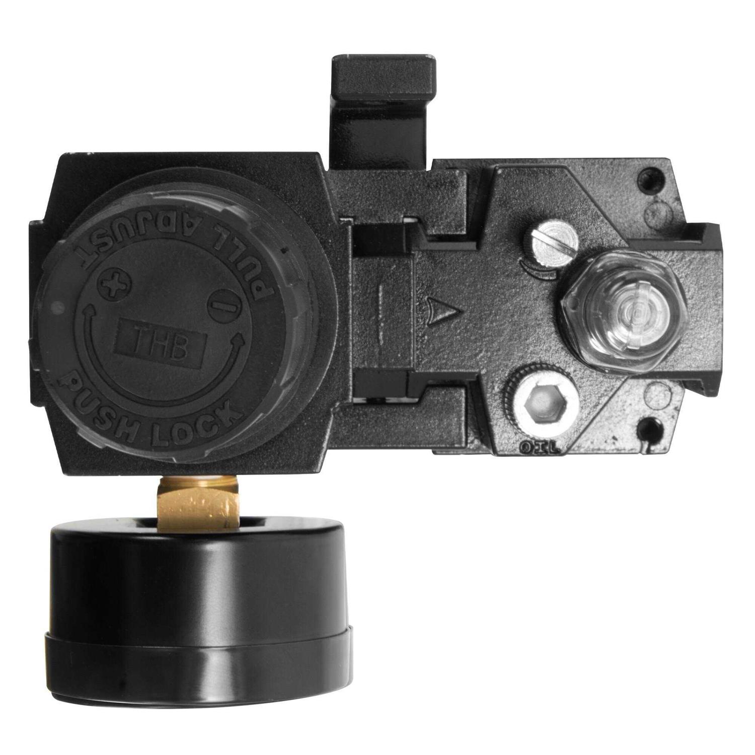 - Regulator lubricator with easy to read pressure gauge for convenience