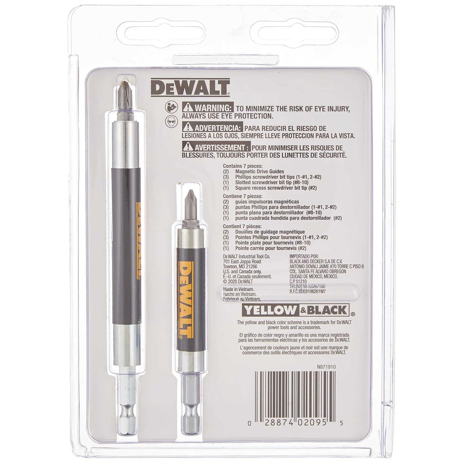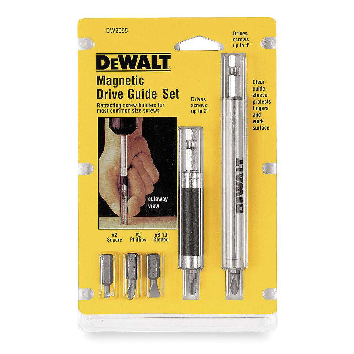 DEWALT designed the magnetic drive guide set to provide solutions to common problems while delivering top quality performance on a variety of applications. With a full range of bits, 2 In. and 4 In. magnetic drive guides, and a durable shank, this set is the perfect tool for jobs where strength and precision are essential. The magnetic guide system allows you to get consistent results driving screws up to 4 In. length. DEWALT understands that, although power is important, you can’t afford to sacrifice safety, so this set is designed to eliminate wobbling and slipping while protecting the user’s hands at the same time.
