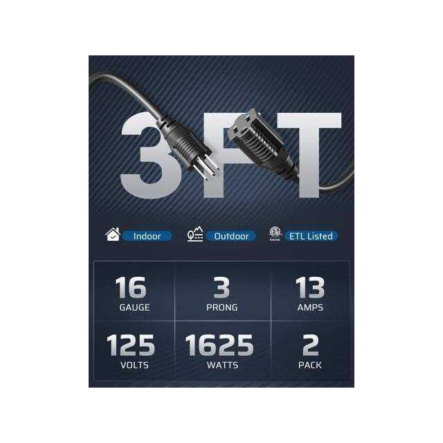 DEWENWILS 6 Ft SJTW Weatherproof Extension Cord,AC 125V/13A/1625W power rated,built with all-copper wire,reinforced blades,and double black jacketed cords.Features full-molding design,withstand a lifetime of wear and tear.Certified to UL.Made of 16/3 gauge upgraded SJTW wire,suitable for temperatures from -40F to 140F. PVC jacket protects against moisture, abrasion, and direct sunlight.3 Prong extension cord is compatible with computers, scanners, lights, and other appliances that require a 3-pin male to female power connector,ideal for compact workplace or home office.Unique material of wire remains flexible even in cold weather,tangle-free,easy to coil and store.