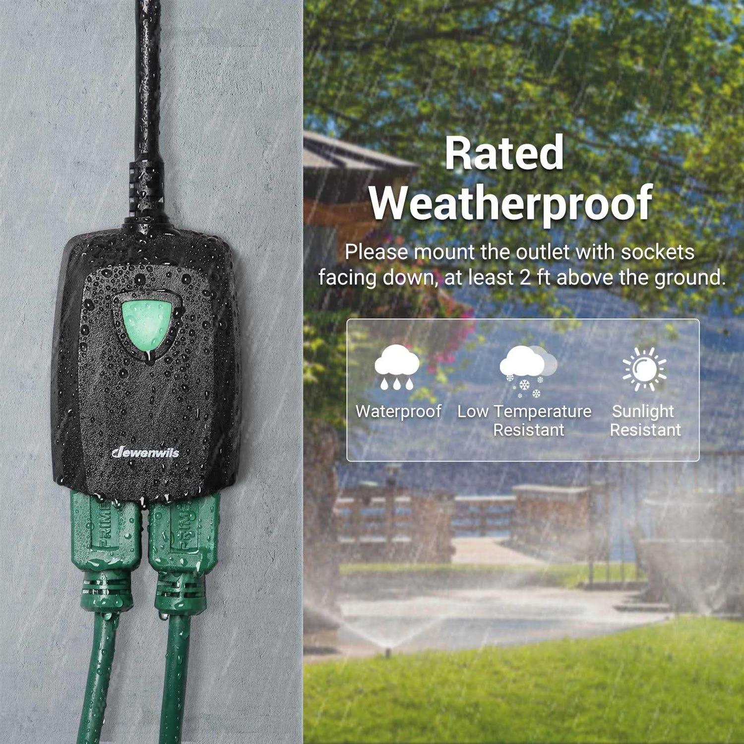 DEWENWILS Wireless Remote Control Outdoor Outlet – the perfect solution for your outdoor lighting and electrical needs. This outlet features two convenient remote controls with a range of up to 100 feet, allowing you to easily control your lights, lamps, and fans from a distance. Designed with durability in mind, this outdoor outlet is weatherproof and rated for heavy duty use with a 15 AMP capacity. The 7-inch extension cord provides additional flexibility for placement and the ETL listing ensures safe and reliable operation. With the DEWENWILS Wireless Remote Control Outdoor Outlet, you can enjoy the convenience of controlling your outdoor lighting and electrical devices with ease. Say goodbye to fumbling for switches in the dark or braving the elements to turn off your outdoor lights. Simplify your life with the DEWENWILS Wireless Remote Control Outdoor Outlet today.