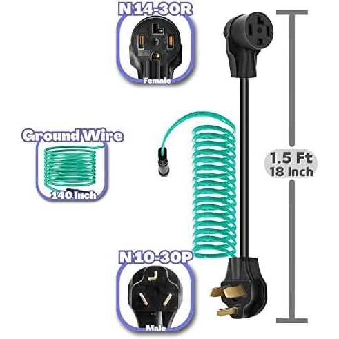 Dryer Adapter Cord, NEMA 10-30P Male to 14-30R Female with Ground Wire – 4-Prong to 3-Prong, 1.5ft, 30A/250V, STW 10AWG – Ideal for Home Appliances,
