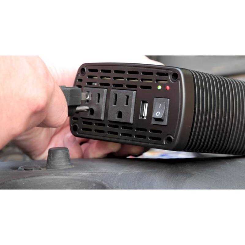 - Converts vehicle power into household AC and USB power, supplying up to 400 Watts of peak power and 320 Watts of continuous output.