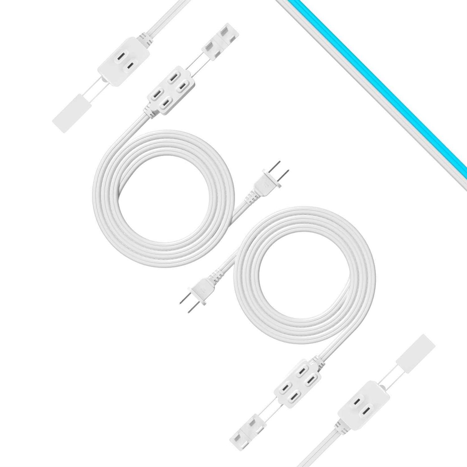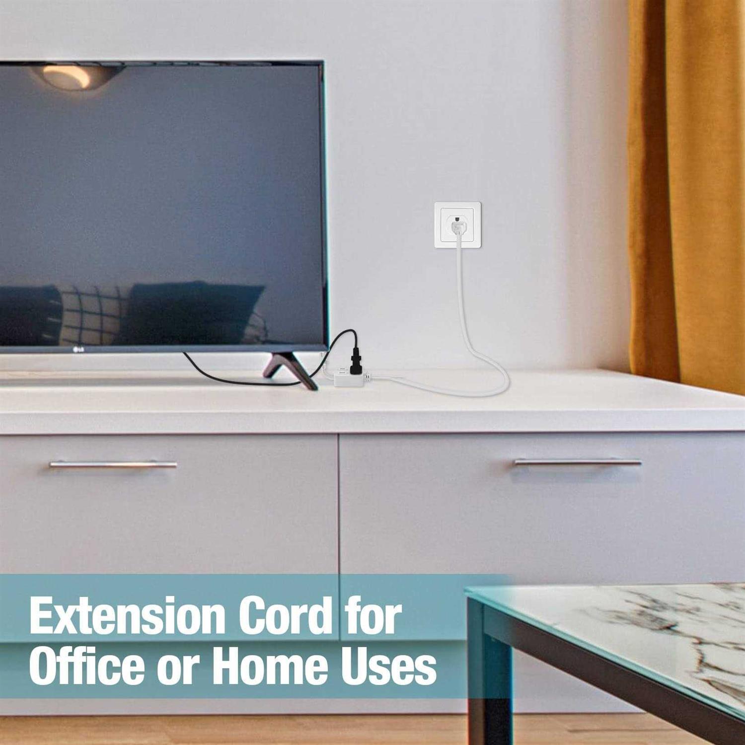 Ideal for light-duty use indoors with kitchen and cleaning tools, media equipment, lighting decorations, and more Durable Power Cord: This power extension cord works in temperatures rated from -4°F to 221°F. Premium flexible vinyl jacket provides protection of the cord against moisture, abrasion, water, severe weather, kink High-Quality Cord: 13A 16 gauge standard power rated, built with 100% pure copper conductor, reinforced blades, and quality white-jacketed cords 3 Outlet Power Strip: Long white 2-prong extension cord with multiple outlets provides power from a distance, perfect for creating a centralized hub for your electronics at your home, office, garage, or outdoor Reliable Safety: Tested and certified by North American agencies. ETL certified with code 5020538, which provides security for your safety.”
