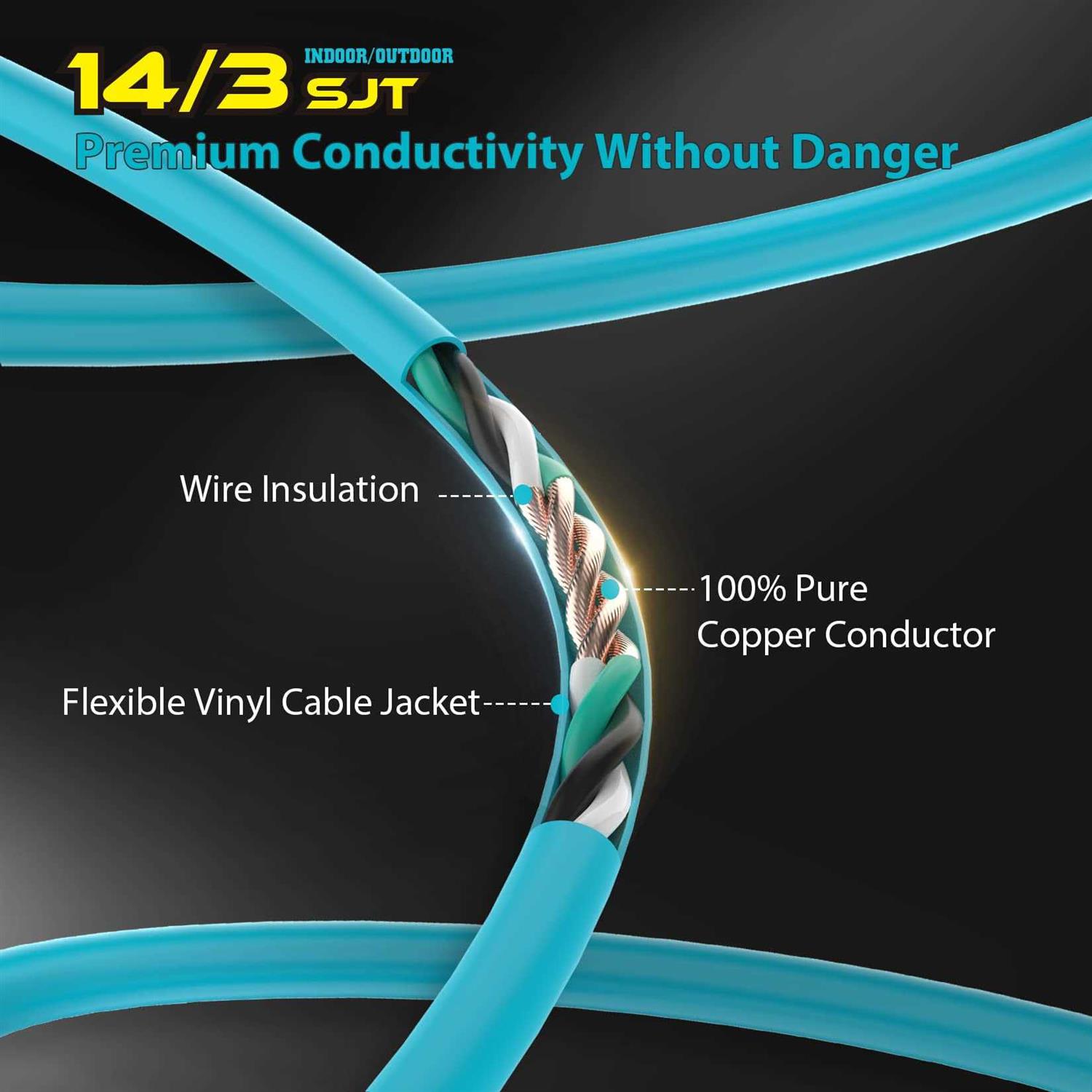 Outdoor Extension Cord: The power extension cord is 25 feet long with a maximum electrical rating of 15 A/ 1875 W/ 14/3 SJT. 100% pure copper conductor. Ideal for use with heavy-duty electric tools, lighting decorations Durable Power Cord: The extension cord works temperatures rated from -4°F to 221°F. Premium flexible vinyl jacket provides protection of the cord against moisture, abrasion, water, severe weather, kink 3 Outlet Power Strip: Long 3 prong extension cord with multiple outlets provides power from a distance, perfect for creating a centralized hub for your electronics at your home, office, garage, or outdoor Reliable Safety: Tested and certified by North American agencies. ETL certified with code 5020538, which provides security for your safety. However, please make sure that the sockets and outlets do not come into contact with water for your safety consideration.