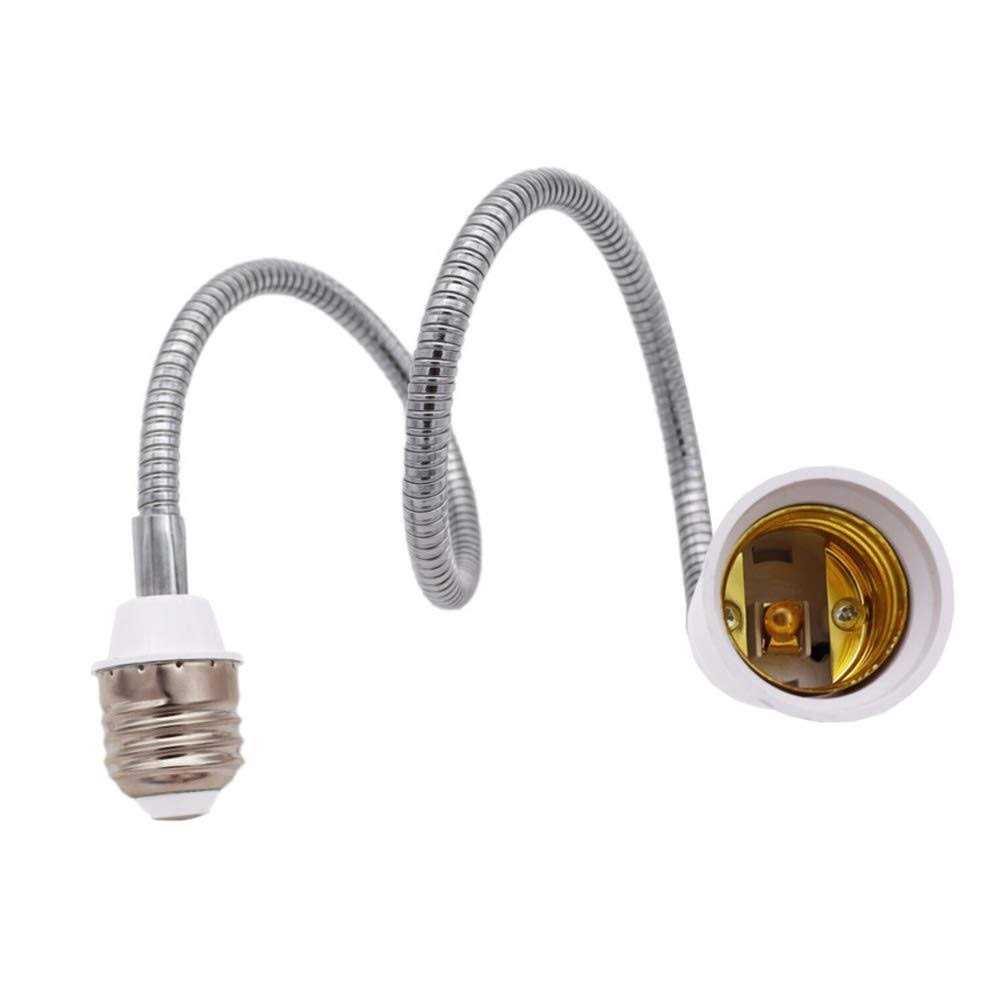 【FLEXIBLE NECK】High adjustability! E27/E27 light socket extender adapter With 58CM/22.5inch flexible gooseneck is easily rotating 360 degrees in all directions to find the perfect angle. Provide a nice strong gooseneck that can easily be flexed and perfectly hold up a lightbulb.Flexible Length: Approx.58cm, 50 cm extra large hose . E26 to E26 Light Bulb Lamp Holder Converter, (Do not contain light bulb, To ensure a stable bend angle, installation of bulbs no more than 200g is advised) Ideal extender: Lowering your bulbs further in recessed lighting fixture, allow light to disperse in 360 degrees, make room brighter. E26 socket extension extends your existing E26 screw mount. No longer worry about big bulbs cannot be screwed on recessed fixture. Made of Fire Retardant PBT,Heat Resistant.safe and beautiful and durable.The built-in conductive part uses high quality copper, efficient power saving. Can be used to beautify any room. Fit perfectly for house, office, Exhibitions, Restaurants,Hotels,etc.”