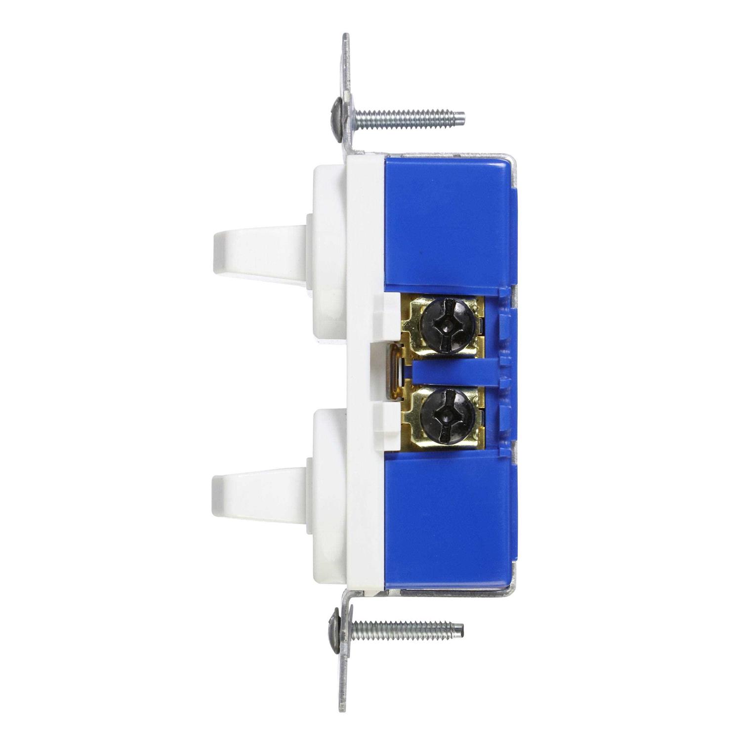 120/277 V/AC rating ideal for fluorescent lighting fixtures and a broad variety of applications. The toggle top and back-body are made of thermoplastic, a durable material. Automatic grounding system eliminates the need for bonding jumper in grounded metal enclosure and provides redundant measure of ground continuity where a jumper is used. Steel-mounting strap is zinc-plated for added corrosion resistance. Back-wire clamps on side terminals provide for easy installation of #12 and #14 AWG wire. Terminal screws are backed out and ready for wiring to enhance ease of installation. Back and side wire. Complete the project with an Eaton wall plate that is sold separately.