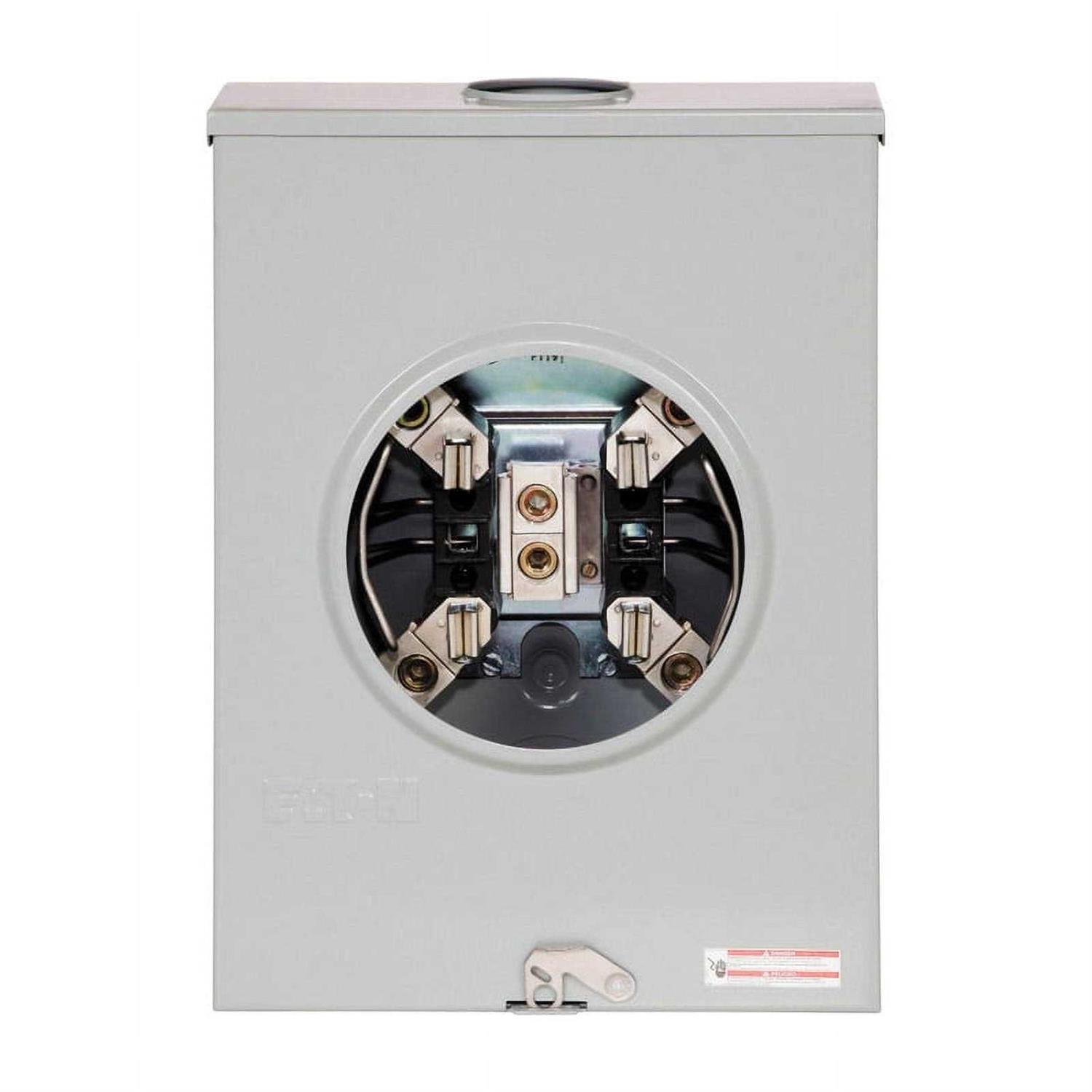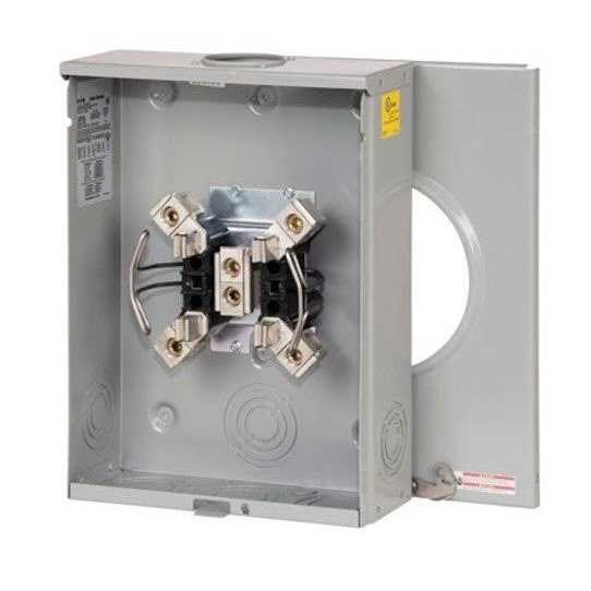 Eaton’s line of single position, self-contained meter sockets house the utilities electrical watt-hour meters in residential and commercial buildings. Sockets work with a circuit breaker distribution section in a rainproof enclosure for residential installations, rural service entrance, mobile homes, and for temporary power on construction sites. All single meter sockets are UL labeled and are supplied in surface mounted outdoor enclosures. Confirm local utility acceptance prior to order entry.