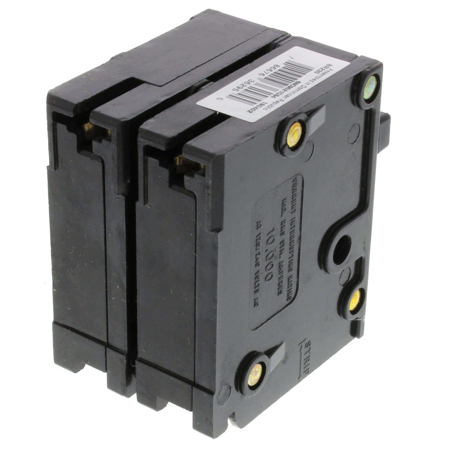 Eaton 2-Pole Circuit Breaker features thermal magnetic molded case for extra protection. Circuit breaker has current rating of 30 A and voltage rating of 120/240 VAC. It is a common trip breaker that has AIC rating of 10 kilo-Amperes and accommodates copper/aluminum wire of size 14-4 AWG. The 1-phase circuit breaker measures 3″ x 2″ x 3″. It features standard interrupting capacity and uses plug-on mounting to hold firmly. It protects wiring from overheating/short-circuit.