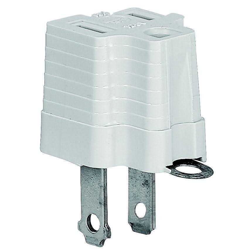 The plug-in adapter is voltage rated at 125-Volt AC. Adapter with grounding lug ensures excellent ground connection by fastening the lug to wall plate mounting screw. This adapter features polypropylene body construction that resists dirt and marring. It has a temperature rating of -20 to 60 deg C. The adapter has durable solid brass blades that minimizes heat rise at full load. Adapter is UL/cULus listed, NOM certified and RoHS compliant.