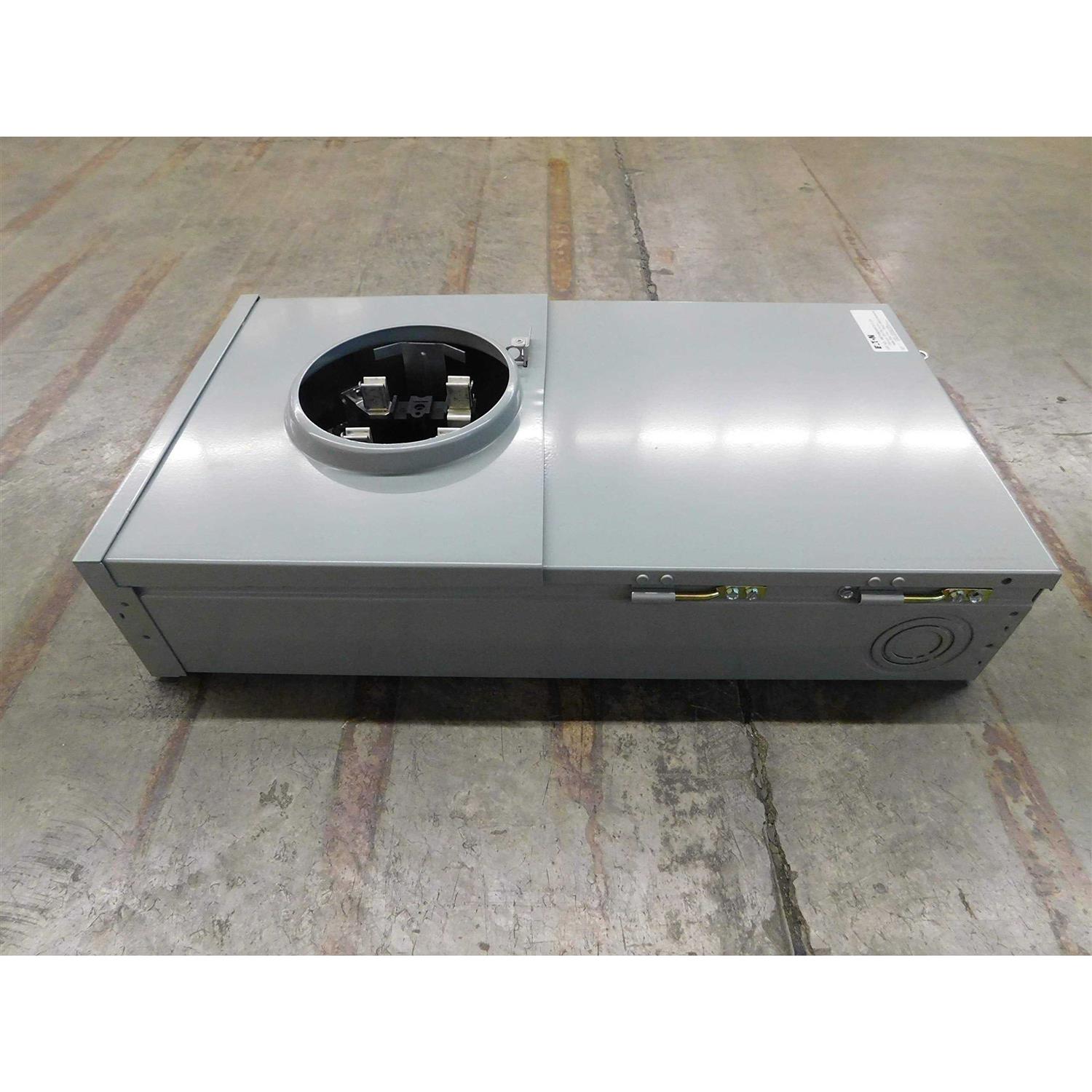 Meter socket load centers ringless – surface mount bottom/top feed breaker bwh2200 main amp rating=200 All-In-One combination service entrance (includes distribution section), BR branch breaker type – Non-EUSERC, 25 kAIC, 4/8 distribution, 4 jaws, main breaker included. Bottom and top feed breaker, ringless security, OH/UG service. 12.50 inches height x 14.44 inches w idth x 4.00 inches depth. Wire size range Cu/Al 60 degrees C. Uses a DS-series hub, sold separately.
