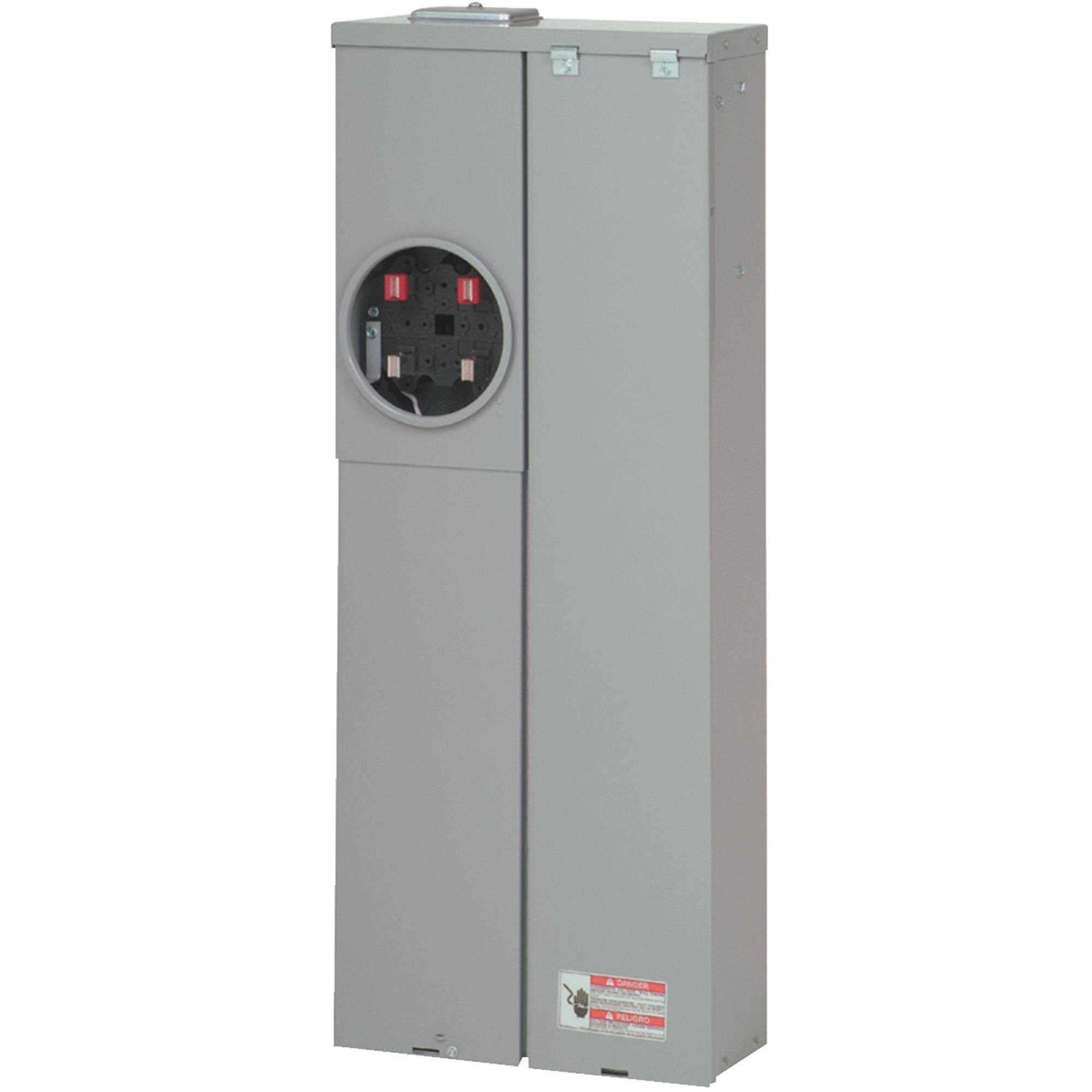 Eaton 1-Phase 3-Wire meter breaker has interrupt rating of 10 -Kilo-Amps, voltage rating of 120/240-Volts and current rating of 200-Amps. It has aluminum bus. This 40-Circuit 20-Space meter breaker has box type main lugs for connection. It accommodates 6 – 250-KCMIL conductors. The CSR2200 meter breaker features NEMA 3R enclosure for added protection. It measures 5.5-Inch x 16.63-Inch x 36.06-Inch. This 4-jaw meter breaker with factory-installed neutrals, has 250-KCMIL lugs and extra knockouts for easy installation. It features hub provisions on top endwall. It offers surface mounting. This meter breaker comes with a sealing ring. Meter breaker is UL listed and EUSERC approved.