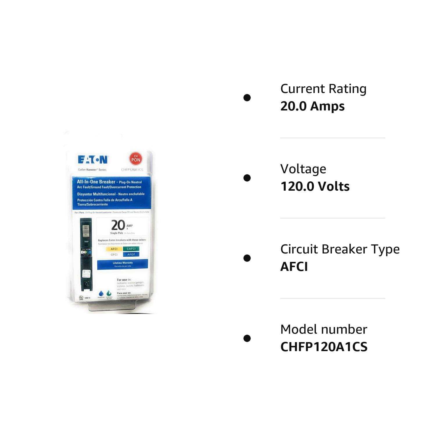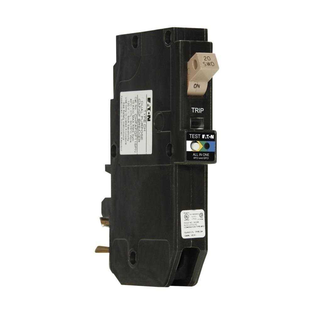 Eaton Type CH 20-Amp 1-Pole Dual Function AFCI/GFCI Plug-On Neutral Circuit Breaker
