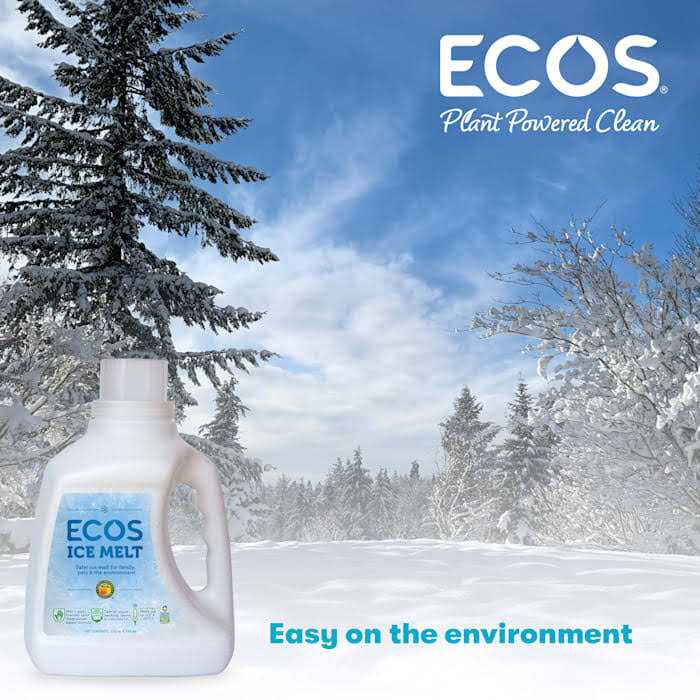 An environmentally friendly ice melting compound. Ice melt’s all natural, 50 % less corrosive, non-phosphate formulation is effective on melting ice down to 13 f. It provides fast results on sidewalks, driveways and paths. Ice melt also prevents ice formation when used before snowfall. Ingredients: magnesium chloride hexahydrate, calcium chloride 2-3 %, potassium chloride 0.5-1 %, sodium chloride 0.5-1 %. Directions: Sprinkle walkways and driveways evenly with 1/4 – 1/2 cup per square yard. Shovel off resulting slush. For best results, first remove loose snow and slush. Useful hints: apply at various intervals during longer snow and ice storms. Whenever possible, apply before snow or ice starts forming.