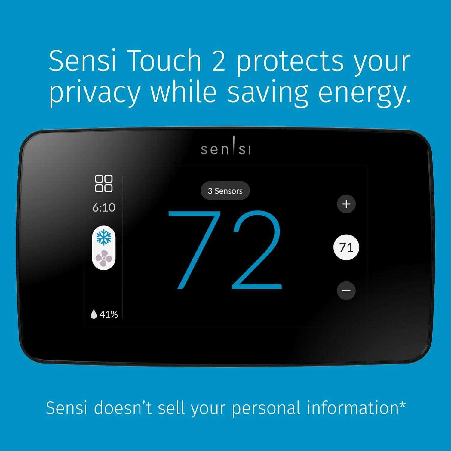 Enhance your comfort with the next evolution of smart thermostats. The Sensi Touch 2 Smart Thermostat is designed for energy savings and data privacy – to give you full control of your home HVAC system. If you leave the house and forget to adjust your thermostat, the Sensi Touch 2 has you covered! With our top-rated Sensi Mobile app, you can remotely control your thermostat from virtually anywhere plus, you can monitor the performance of your home HVAC system with smart alerts and service reminders. Pair your Sensi Touch 2 with up to 15 Sensi room sensors (sold separately) to help you prioritize temperatures where you need it the most.