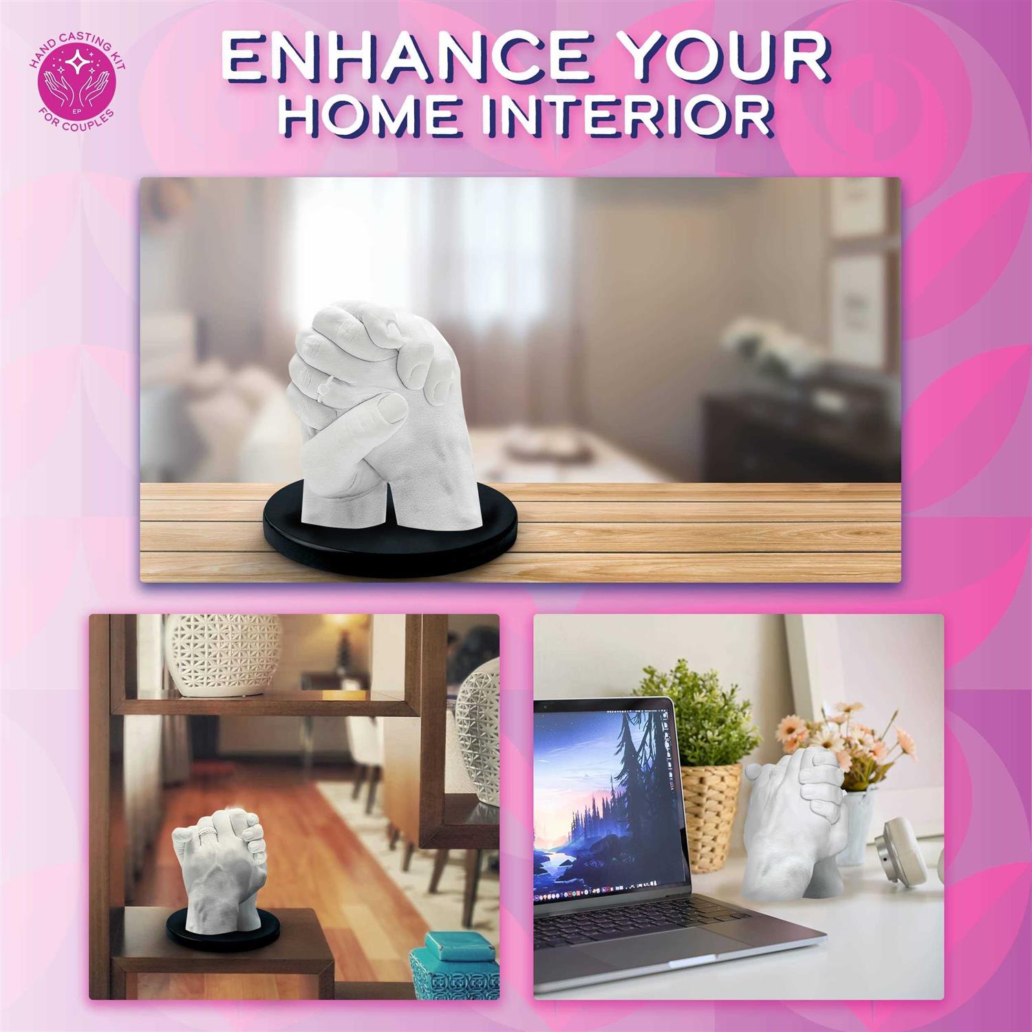 This Hand Molding Kit is a simple and easy way to capture memories with your partner and a perfect couples gift or anniversary gift. This Hand Casting Kit creates keepsake hands that can be beautifully displayed within your home. The clay hand molding kit created hand molds of up to two hands. The Hand plaster Kit and Refill includes everything you need to create two personalized keepsake hands. The hand clay mold kit makes a wonderful gift for couples! It is 100% safe for all ages, and a super fun activity for all!