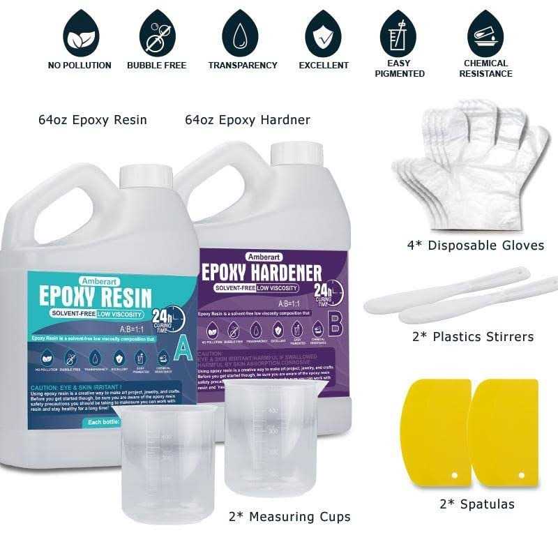 Epoxy Resin Kit, 1 Gallon High-Performance Epoxy Resin, Perfect for Table Tops, Self-Leveling, Minimal Bubbles, Clear, Glossy, UV Resistant, DIY