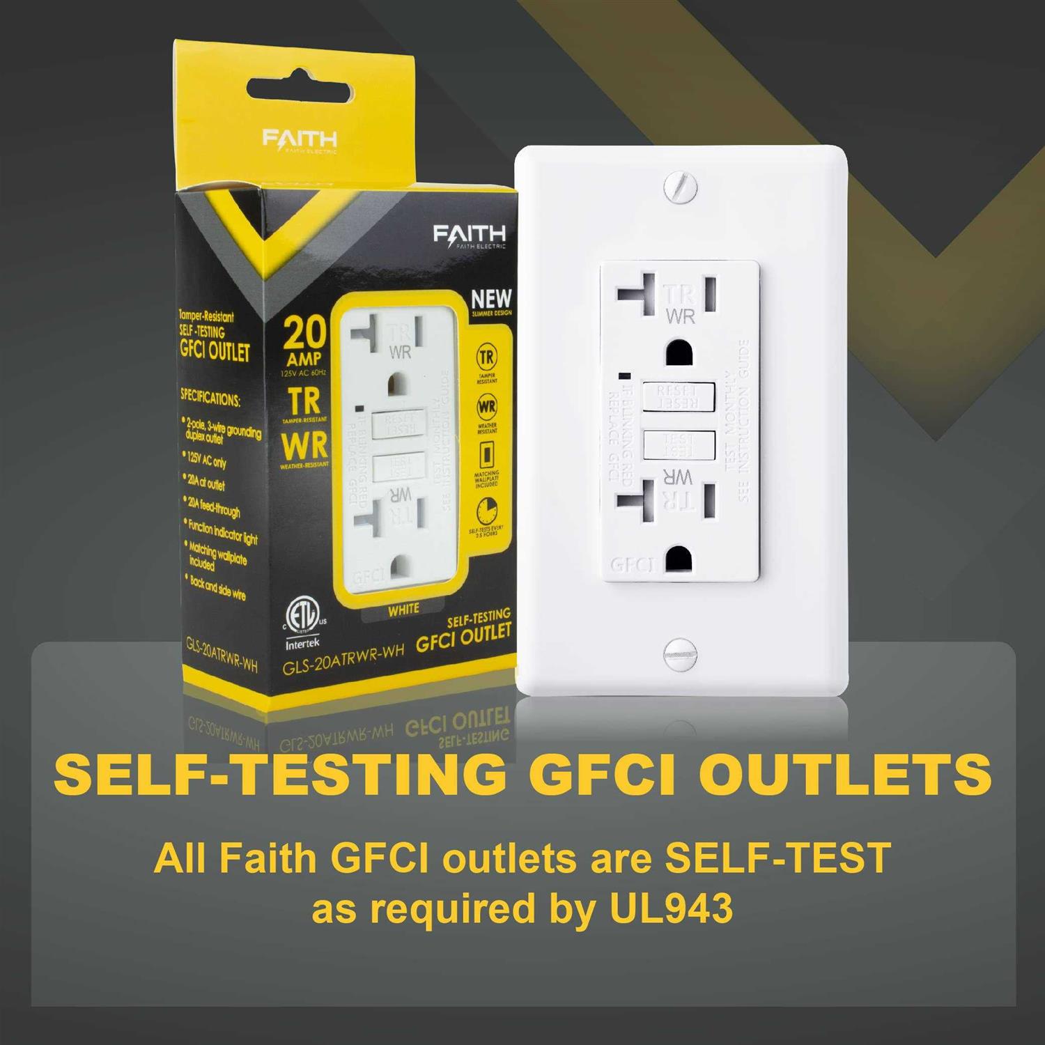 Faith 20A Outdoor GFCI Outlets, Weather and Tamper-Resistant GFI Duplex Receptacles, Self-Test WR TR Ground Fault Circuit Interrupter with Wall