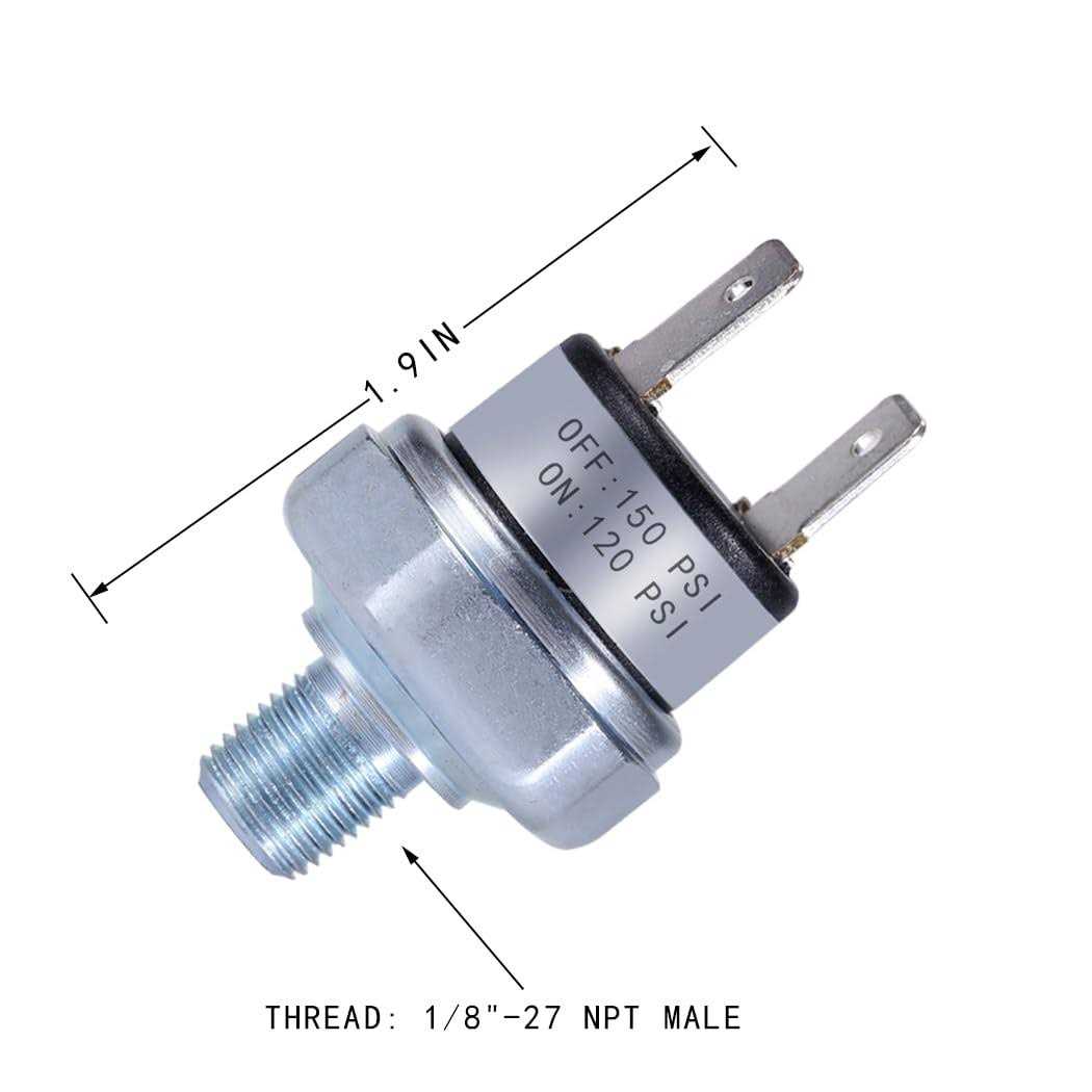 FanWayer Air Pressure Switch 120-150 PSI Pressure Switch 1/8-27 NPT DC 24V 12V Pressure Switch Air Compressor Pressure Switch 120PSI Pressure Switch 150PSI
