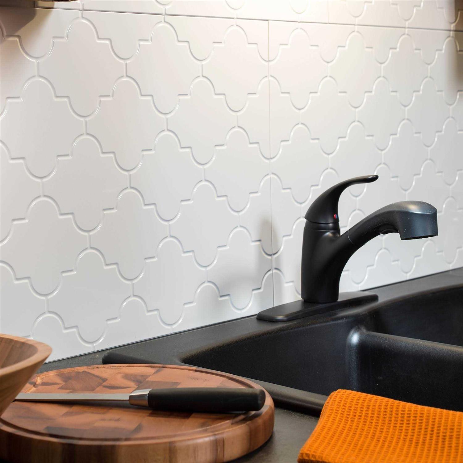 Fasade 18in x 24in Monaco Gloss White Backsplash Panel (5 Pack)