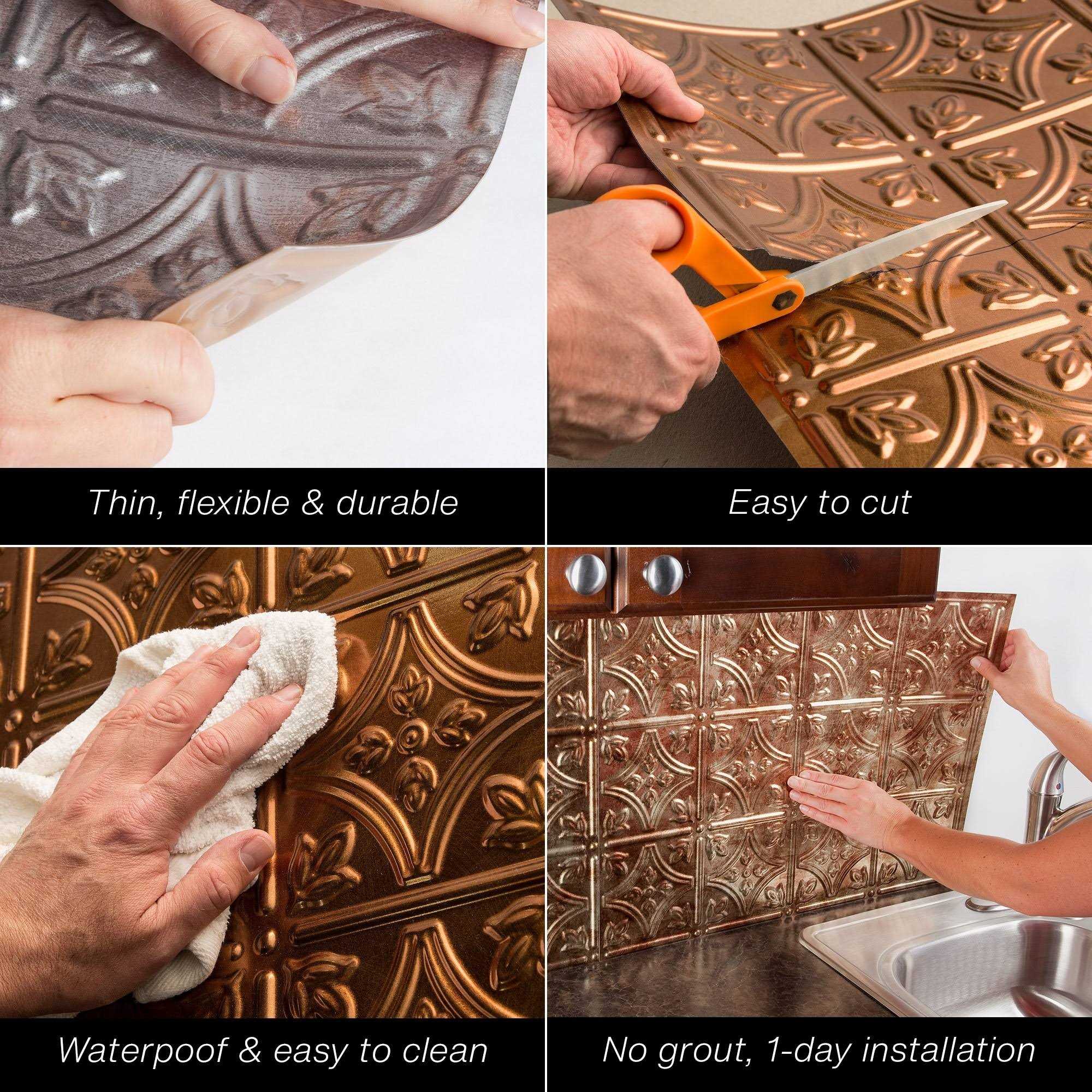 Take home renovations into your own hands with Fasade Backsplash. Fasade Backsplash tiles are lightweight, flexible and easy to install, allowing even the most novice DIY-ers to create beautiful and luxurious spaces in their homes. These versatile tiles are made of vinyl and come in numerous finishes to match any decor in your home. They are easy to cut, simply use a scissors or utility knife and can be installed using construction adhesive or Fasade Double-Sided tape. Waterproof, rust-proof and mold-proof, our products are created with you in mind. Our vinyl finishes allow quick cleanup for even the toughest messes, simply wipe clean with warm, soapy water and soft cloth. You’ll be grateful you chose Fasade, even years down the road.
