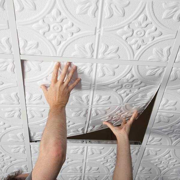 Fasade Lay-in decorative thermoplastic ceiling tiles provides the classic look of traditional tin ceilings for a fraction of the cost. The ceiling panels feature quick and easy installation, inserting easily into any existing or new suspended ceiling grid. Whether youre remodeling an entire room or simply accenting a small area, these ceiling panels create an instant designer look. Unlike traditional tin panels that require decades to acquire an antique look, these ceiling tiles have that turn of the century authenticity right out of the box.
