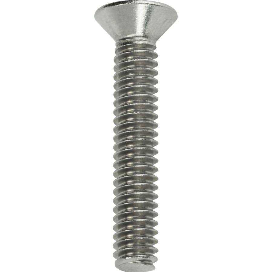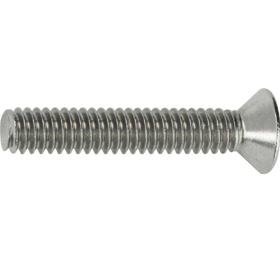 Thread Diameter 0.138″ Head Diameter 0.262″ 82 Degree Countersink – Head Height 0.059″ Phillips Drive #2 18-8 Stainless Steel provides strength and offers good corrosion resistance in many environments. Machine screws are often used with nuts but also often driven into tapped holes (without nuts). They might be considered a screw or a bolt based on the Machinery’s Handbook distinction. In practice, they tend to be mostly available in smaller sizes and the smaller sizes are referred to as screws or less ambiguously as machine screws, although some kinds of machine screw can be referred to as stove bolts. A flat head is A head with flat top and a conical bearing surface (bottom). Designed to be Countersunk. Rod with spiral threads the entire length and with one flat end and a head on other end. Holds object to another object that has a pre-threaded hole, frequently a nut. Usually manufactured from metal. Can be rotated into or out of the object using a screwdriver or wrench.