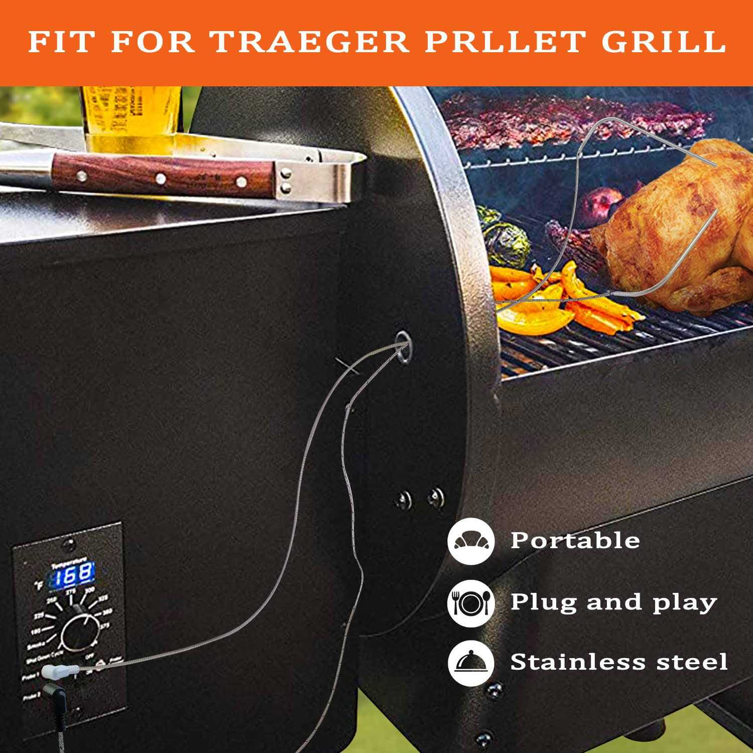 REPLACE OEM TEMPERATURE PROBE – Meat thermometer compatible with most Traeger BBQ Grills: Bronson 20, Century 22, Century 34, Century, Deluxe Elite 300, Double Commercial, Eastwood 22, Eastwood 34, Executive, Heartland, Junior Elite 20, Texas Elite 34, Lil Tex Elite 22, Lonestar 20. (TIP: Not fit for Masterbuilt& Camp Chef Grill) MUST HAVE WHEN GRILLING – No more open your grill to see your meat temps. Grill meat thermometer fit for all meats, meat temperature probe tip can be rinsed with water or cleaned with a damp rag FOOD GRADE STAINLESS STEEL PRO PROBE – 6.5″ Waterproof meat probe, 1/8″(3.5mm) plug. plug and play, ease of use.