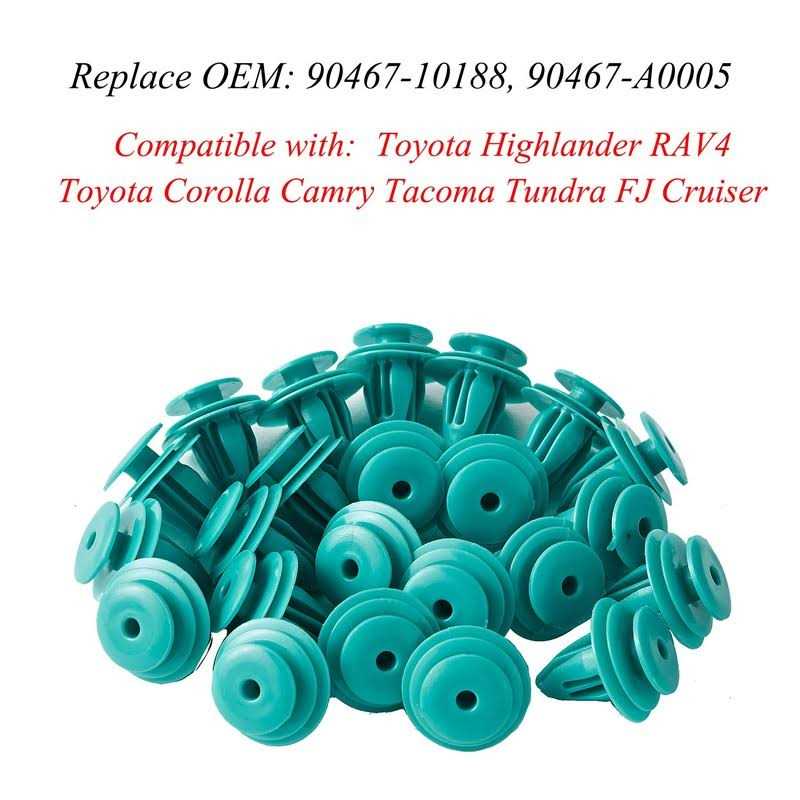 About The Item: Advantage: Lightweigh, Convenient, Coming With The Plastic Fastener Remover Can Help You Remove The Door Panel Trim Clips Quickly And Easily. Durable And Strong: Made Of High-quality Nylon Plastic Material, Anti-wear And Anti-corrosion, Would Not Break Or Crack Easily During Use. Replace Number: Oem #90467-10188, 90467-a0005. Compatible With Toyota Camry 2002-2014, Toyota Corolla 1998-2015, Toyota Sienna 2004-2010, Toyota Sequoia 2001-2005, Toyota Tacoma 2008-2012, Toyota Tundra.