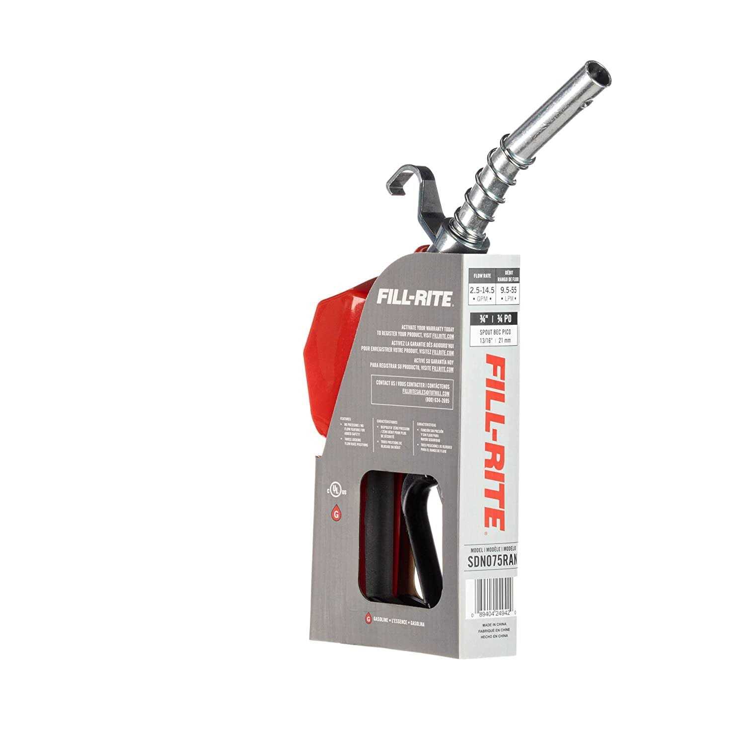 Fill-Rite’s automatic fuel transfer nozzles feature heavy-duty construction. The SDN075RAN is a 3/4 in automatic shutoff nozzle designed for fuel transfer. This model is designed for gasoline applications with a 13/16 in spout size and red jacket. The SD series nozzles from Fill-Rite usher in a new era of both value and performance. Proudly manufactured in the USA, Fill-Rite equipment is constructed with heavy-duty materials to withstand rugged everyday use, extreme weather exposure and both on and off-road applications. Fill-Rite is supported by a wide network of distributors and retailers, ensuring you will always be able to find replacement parts and rebuild kits for your fuel transfer equipment.