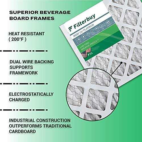 20x20x5 replacement whole house air filters for your furnace, air conditioner, heat pump, or HVAC system (actual size: 20.25″ x 20.75″ x 5.25″) Compatible Models: Amana / Goodman / Coleman / Electro-Air / Five Seasons / Gibson / Nordyne / Totaline / York Filter Part Numbers (FS2020, M2-1056, MU2020, 9183960), BDP / Payne (P102-2020, P102-2020BB, B2-1056, M2-1056), Housing Part Numbers (AMU2020, CMF2020, P102-MF14B, CEMU1625, CENC1625 CEMU2020, CENC2020, EABB2020, EAMU2020, EANC2020, EAMU2020, EANC2020, FSBB2020, FSMU2020, FSNC2020, BB2020, MU2020, NC2020, GMU2020, N-NC2020, P102-BB14B, P102-NC14, YMU2020, YNC2020) MERV 13 synthetic media (comparable with MPR 1500 – 1900 & FPR 10) protects homes from bacteria and more by trapping 98% of airborne particles without impacting air flow Electrostatically charged, pleated (100% US made) filters capture more harmful particles and last 3x longer than fiberglass models Industrial-grade beverage board (recyclable) frames with dual wire backings outperform standard cardboard designs The Filterbuy replacement whole house air filter 20x20x5 (actual measurements: 20.25″ x 20.75″ x 5.25″) ensures that your furnace, air conditioner, heat pump, or HVAC system is circulating the cleanest air possible to help preserve your budget and healthy lifestyle. MERV 13 synthetic media (comparable with Healthy Living Ultimate Allergen Defense MPR 1500 – 1900 & FPR 10) is recommended if you have a respiratory illness (such as asthma) due to its capability to trap 98% of airborne particles, protecting your home or business from bacteria, smoke, smog, debris, lint, pollen, mold, dander, and other forms of dust without impacting air flow. High-quality construction features an electrostatically charged design with 12 pleats per foot that captures more harmful particles and prolongs the products lifespan by three times that of fiberglass models. Plus, our industrial-grade beverage board frames are paired with dual wire backings that significantly outperform traditional cardboard compositions by improving structural integrity with their ability to endure temperatures up to 200 degrees Fahrenheit and withstand exposure to moisture. Installation is also made simple with the addition of easy-to-understand arrows that help identify the direction of air flow and subsequently the way the filter needs to be placed. To top it off, all our components are 100% manufactured within the United States and designed with recyclable materials, providing an eco-friendly alternative to enhancing your air quality. Filterbuy: Breathe Freely!