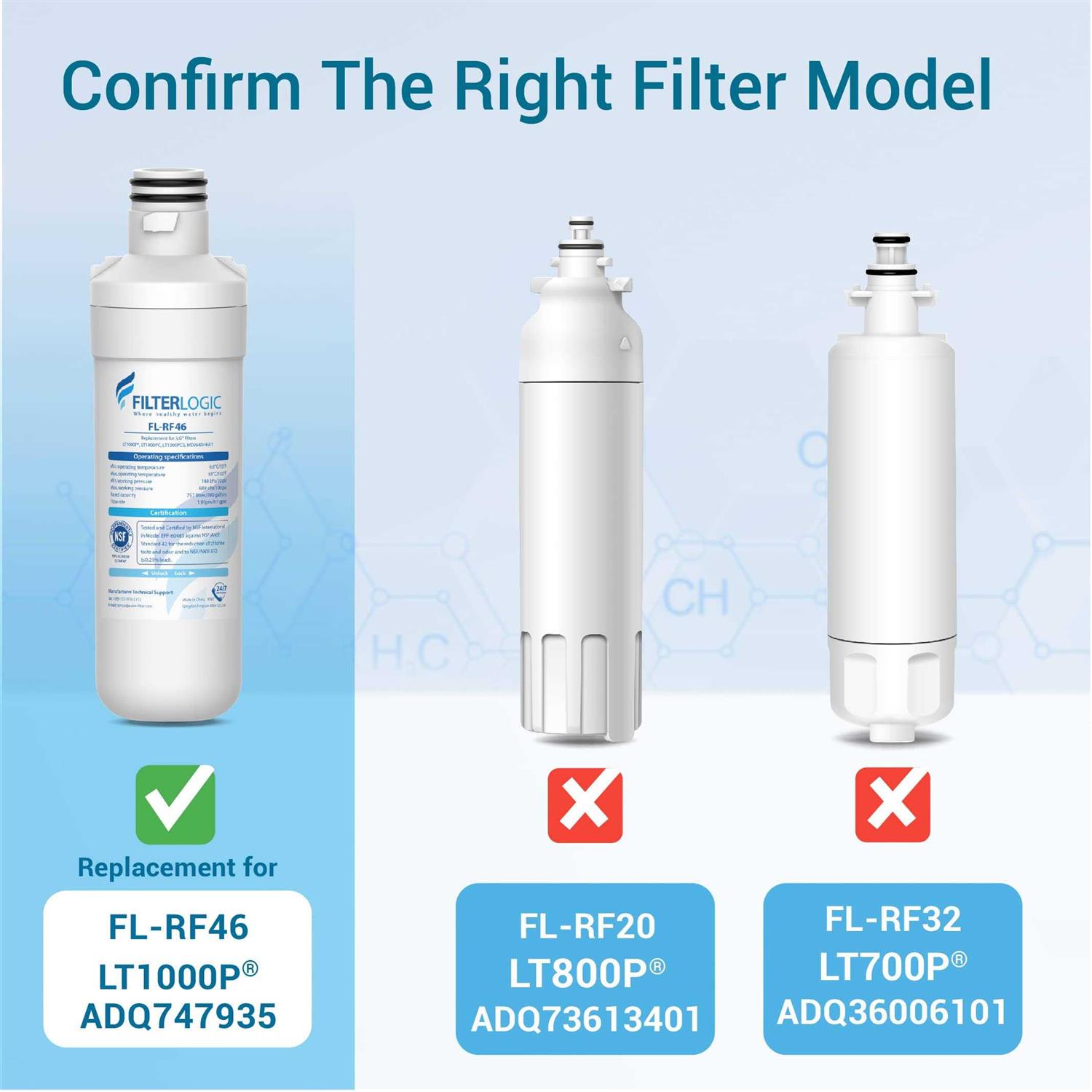 The Filterlogic refrigerator water filter is certified by NSF 42 and 372 standards. The innovative design and advanced materials reduce chlorine, taste and odor from your water source, leaving you with healthier water and a cleaner, fresher taste. Maximum filtration: The Filterlogic refrigerator filter reduce a wide range of harmful substances from your water source including chlorine and all other major impurities, as certified by an independent, third-party laboratory. Perfect fit: Filterlogic is constructed with precise measurement technology, used to perfectly reproduce the original scale parameters of the original brand filter with advanced industrial automation equipment. The filter can be easily installed in minutes without tools. Each Filterlogic filter functions optimally for 6 months or 200 gallons, which will vary based on water condition. Change it on time to ensure fresh-tasting water. Quality remains our responsibility when the filter leaves the factory. Replacement for Water Filter Models: LG LT1000P, LT1000PC, LT1000PCS, LT-1000PC, ADQ74793501, MDJ64844601; Kenmore 46-9980, 9980, ADQ74793502, PF16, GF-1000P, CF16, WD-LT1000P, AQF-LT1000P, WS646A, MB-LT1000P, BL003-S, RWF1053, CWMF002, ZWFL7-RF300, CLT-2, OH-1000p, AB-9834. Replacement for Air Filter Models: LG LT120F, ADQ73214402, ADQ73214403, ADQ73214404, ADQ73334008, 46-9918, 469918, 9918. LG is a registered trademark of LG CORP. LG is used for reference purposes only. The Filterlogic refrigerator water filter is certified by NSF 42 and 372 standards. The innovative design and advanced materials reduce chlorine, taste and odor from your water source, leaving you with healthier water and a cleaner, fresher taste. Replacement for Water Filter Models: LG LT1000P, LT1000PC, LT1000PCS, LT-1000PC, ADQ74793501, MDJ64844601; Kenmore 46-9980, 9980, ADQ74793502, PF16, GF-1000P, CF16, WD-LT1000P, AQF-LT1000P, WS646A, MB-LT1000P, BL003-S, RWF1053, CWMF002, ZWFL7-RF300, CLT-2, OH-1000p, AB-9834. Replacement for Air Filter Models: LG LT120F, ADQ73214402, ADQ73214403, ADQ73214404, ADQ73334008, 46-9918, 469918, 9918.