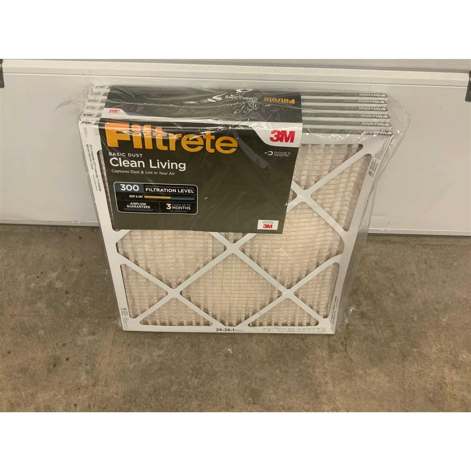 Filtrete MPR 300 24x24x1 AC Furnace Air Filter Clean Living Basic Dust 6-Pack