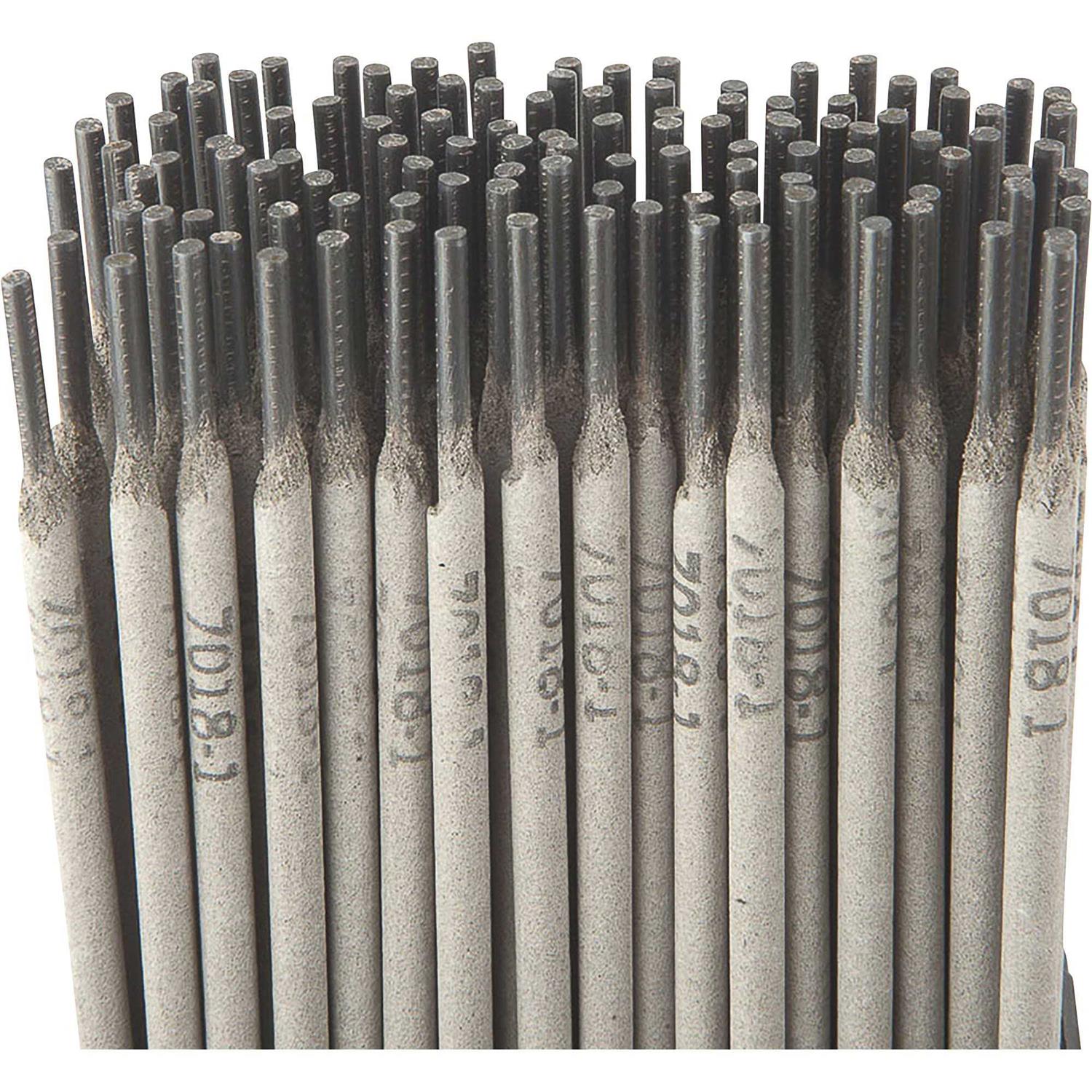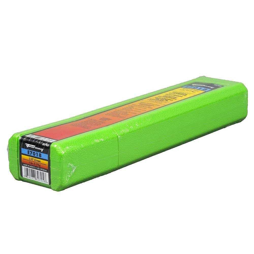 Forney E7018 mild steel Low Hydrogen welding electrodes 30705 easily produces quality results on smaller amperage DC or higher amperage AC welders. It is suitable for all positions on steels that harden where no preheat is used, and on cold rolled steels normally exhibiting excessive porosity when welded with conventional rod. The low hydrogen content reduces cracking and peeling of the weld material. Ideal for field erections, steel structures, frames, trailer hitches and chassis.