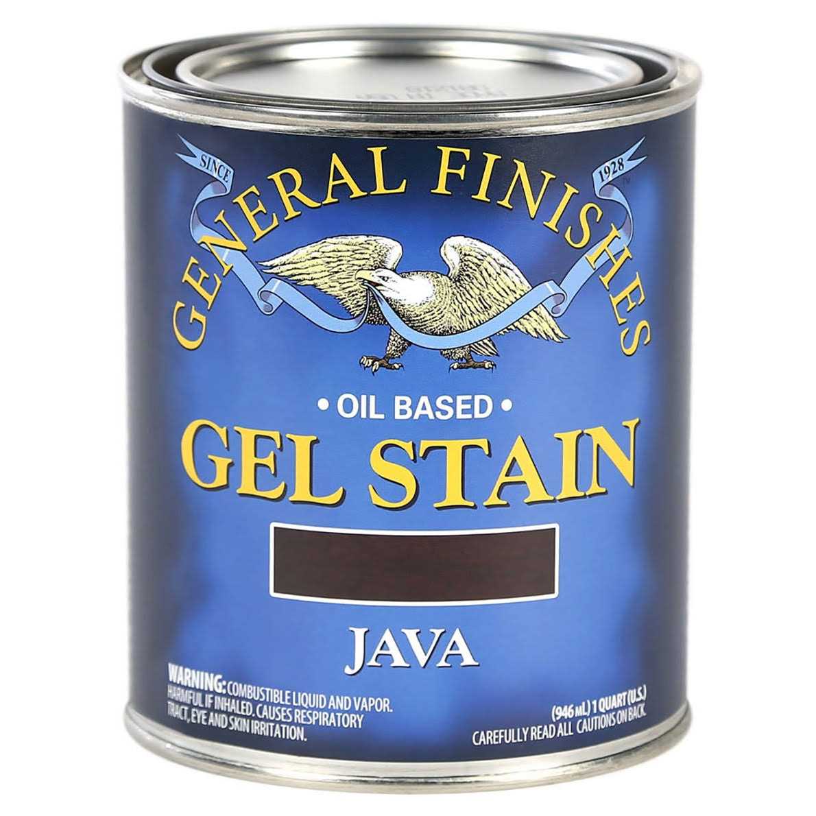 General Finishes Java Gel Stain, 1/2 Pint Shipping | Return Policy Description This is the stain that has the most “finishing feel” of all General Finishes’ products. Heavy-bodied does not penetrate as deeply into the wood as liquid oil-base stains. Works especially well on difficult woods such as aspen or pine. Our easy-to-use stains simply wipe on with a cloth or applied with a foam brush (no spills or splashes). These oil-based Gel Topcoats and Stains are quite possibly the easiest