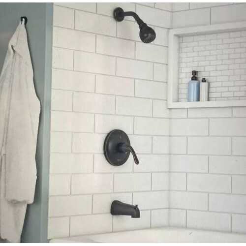 The Builders 1-Handle Tub and Shower Faucet from Glacier Bay offers smooth, classic styling ideal for a wide range of bathroom decor. Featuring an elegant bronze finish, the decorative single-handle lever, spout and showerhead are easy to operate, while the pressure balance system helps protect against scalding and cold shock for an enjoyable shower every time. The showerhead is WaterSense certified with a 1.8 GPM flow rate. The ceramic disc cartridge ensures drip-free operation. Coordinate with other pieces from the Builders series to create a stylish theme throughout your bathroom.