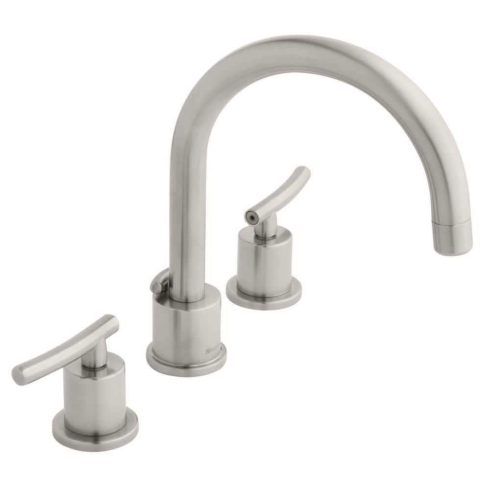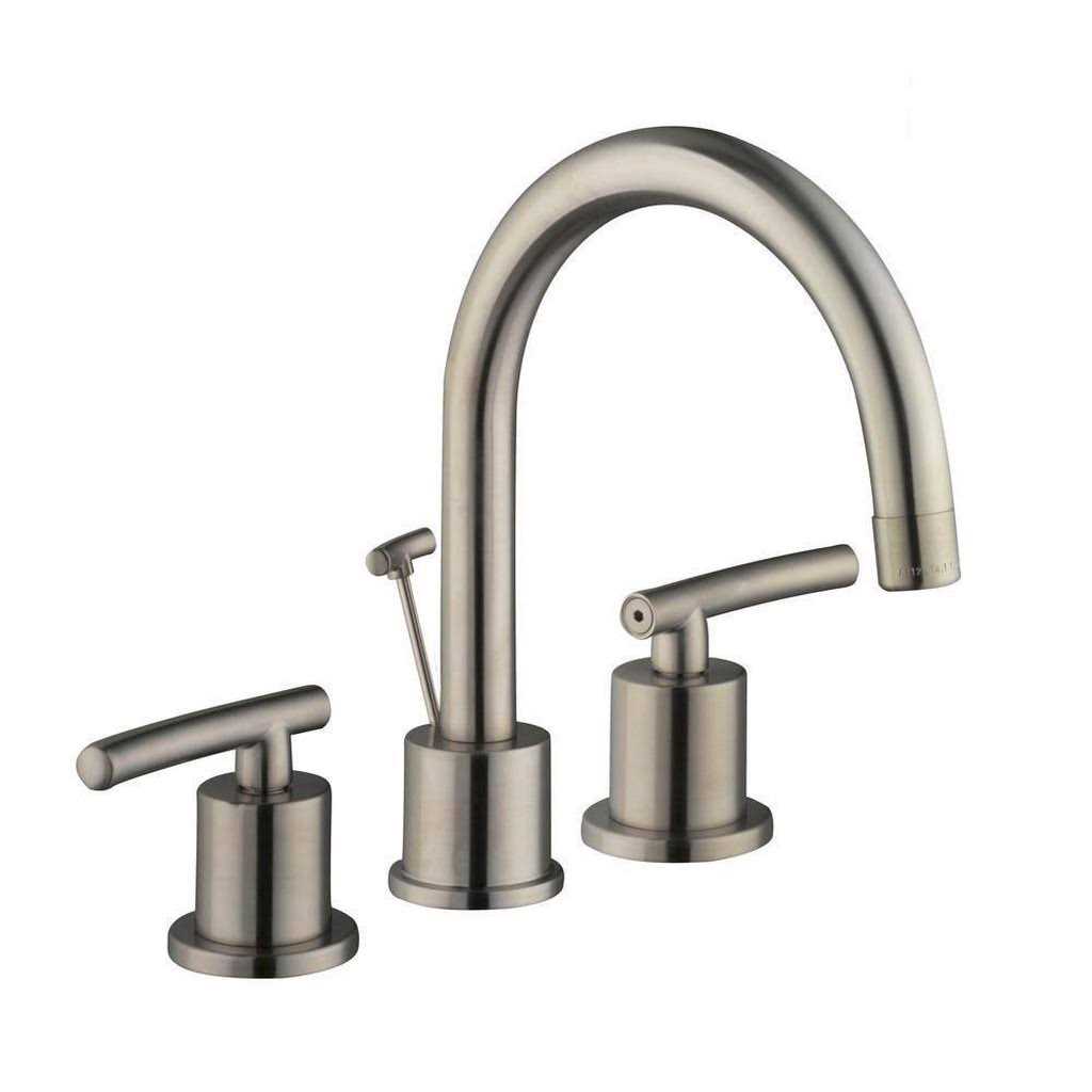 Widespread 2-Handle High-Arc Bathroom Faucet in Brushed Nickel from Glacier Bay features a sleek and contemporary design that complements a wide variety of decor styles. WaterSense certified, this faucet has a 1.2 GPM water flow rate to help conserve water and ceramic valves to prevent drips. The 2-handle design and high-arc spout provide easy use and access. This faucet features the Glacier Bay exclusive ClickInstall drain assembly for quick and simple installation. Pair with other pieces from the Dorset collection for a complete and polished look throughout your bathroom.