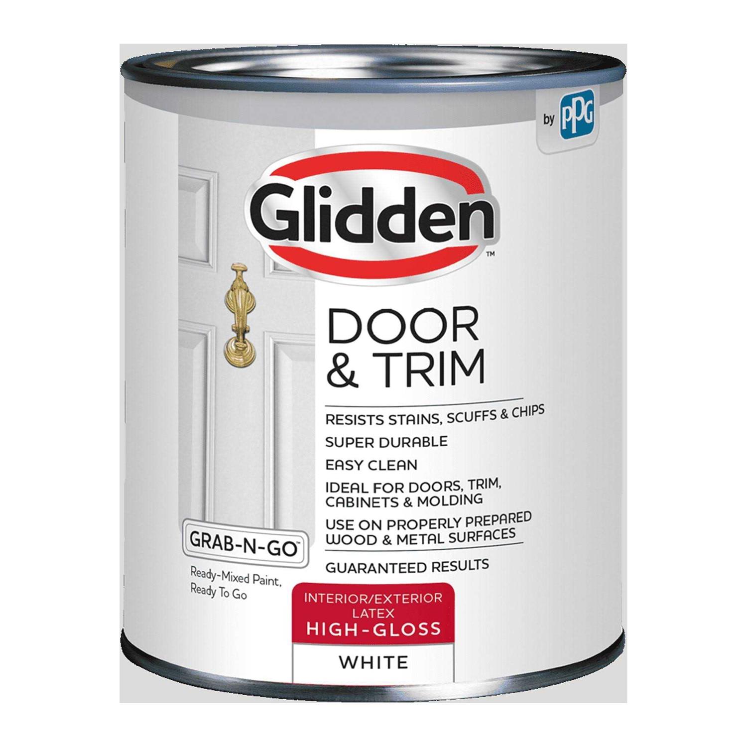 Glidden Door & Trim Grab-N-Go Interior/ Exterior Paint, High-Gloss, Red, 1 Quart is ideal for use on all interior and exterior trim, doors, cabinets and molding, including properly prepared or previously painted wood, composite and metal surfaces. The solution for updating your home, this paint is perfect for doors, trim, cabinets, and molding, standing up to even the most active lifestyles. Available in 3 ready mix colors.