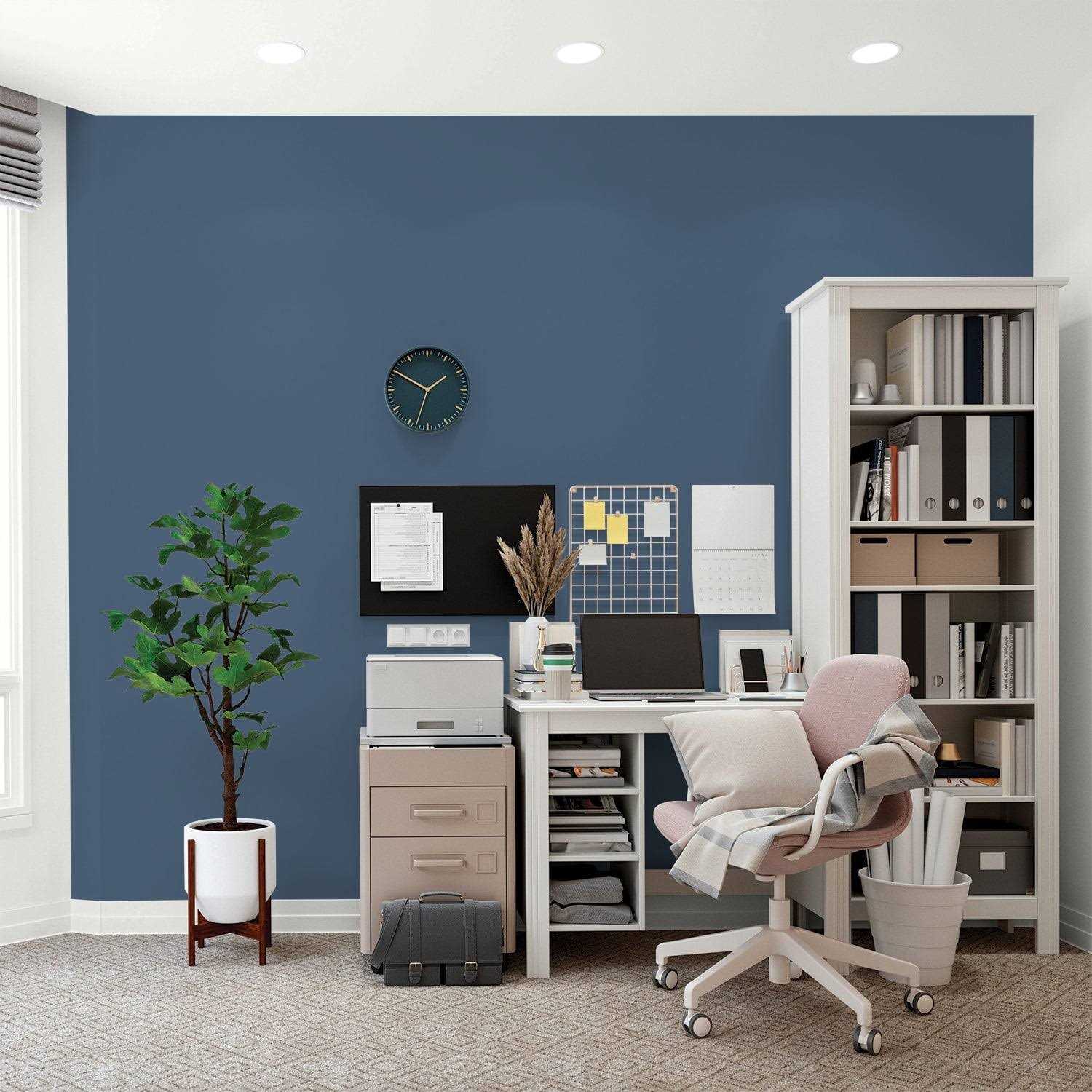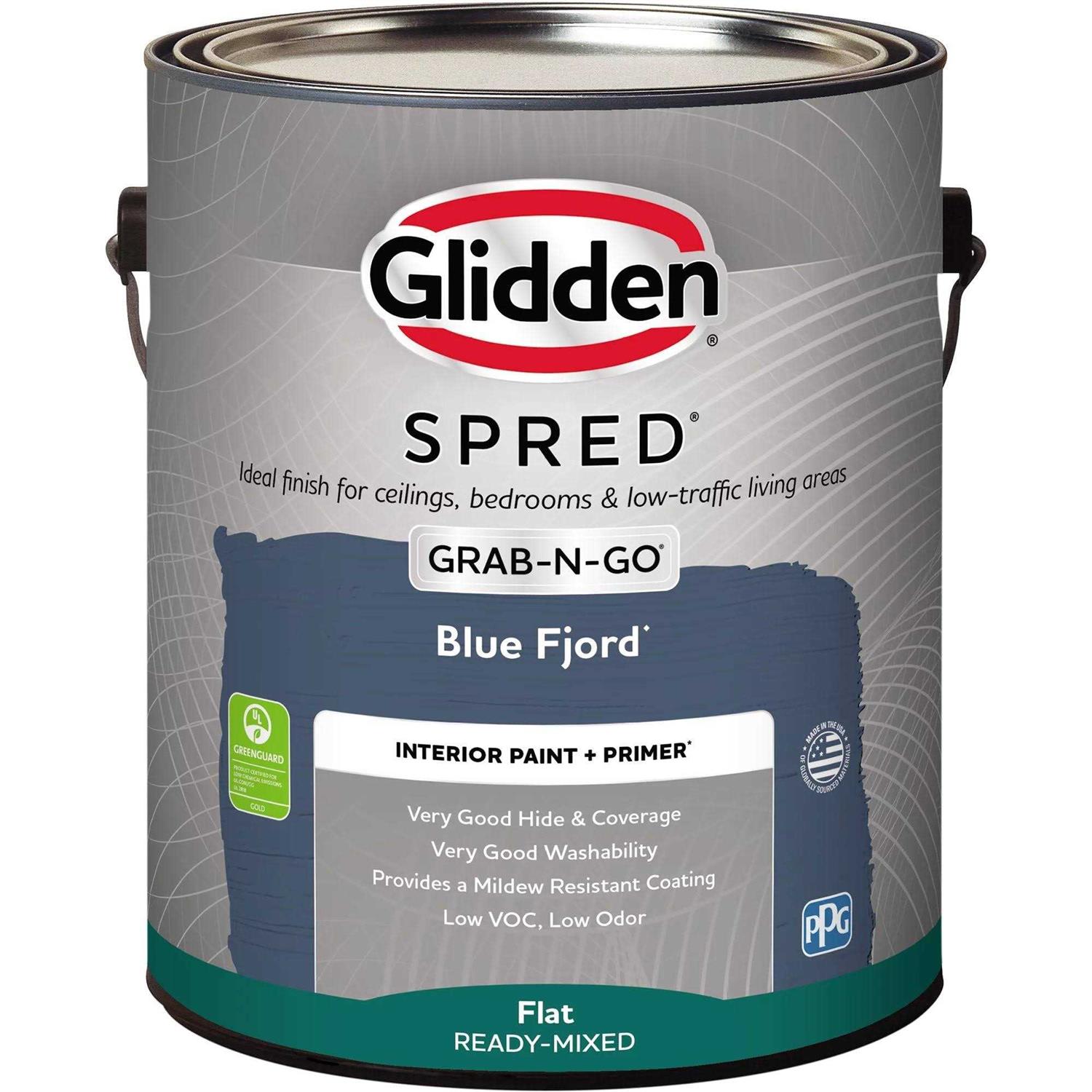 Glidden Spred Interior Paint, Blue Fjord, Flat, 1 Gallon is a low-VOC, low-odor liquid paint and primer* all-in-one that provides very good hide, coverage, and washability. Recommended for use on properly prepared concrete/masonry, metal, drywall, plaster, and wood. Select the best sheen for your project. Flat is an ideal finish for ceilings, bedrooms and low traffic living areas. Eggshell is an ideal finish for walls in all living areas including kitchen, bathroom and living room. Semi-gloss is an ideal finish for trim and interior doors. *Separate primer or multiple coats may be required.