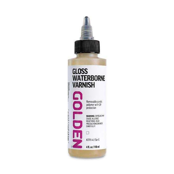 Golden Gloss Waterborne Varnish provides a layer of protection that resists retention of dirt and dust. A true “varnish” can be removed to facilitate cleaning, and Waterborne Varnish is removable in addition to containing Ultra Violet Light Stabilizers [UVLS] to provide protection from exposure to sunlight. For use on interior acrylic paintings. Apply without the need for harsh solvents for thinning, cleanup or removal. Available in 4 sizes.