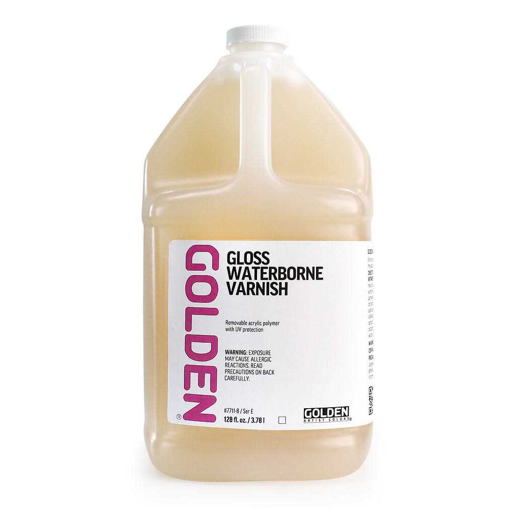 This waterborne acrylic polymer varnish from Golden provides a layer of protection that resists the retention of dirt and dust. It is removable in addition to containing Ultra Violet Light Stabilizers (ULVS) to provide protection from exposure to sunlight. Waterborne Varnish is for use on interior acrylic paintings and can be applied without the need for harsh solvents for thinning, cleanup or removal, or the ventilation and other precautions necessary when working with mineral spirit varnish. Gloss Varnish dries to a glossy finish that may saturate the color.