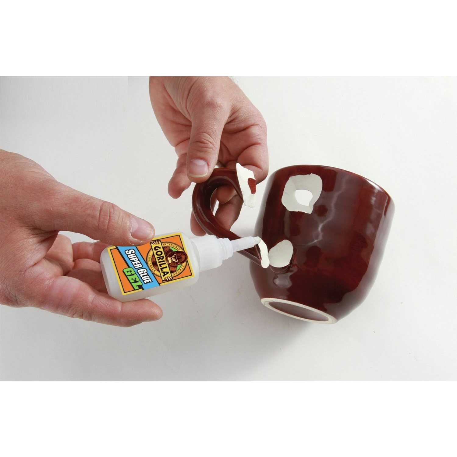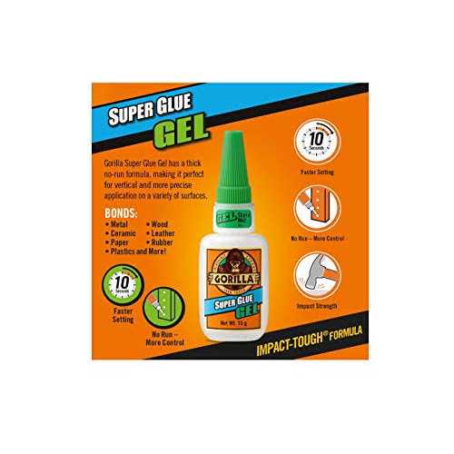 Thicker and more controlled formula great for multiple surfaces and vertical applications. Developed for long-lasting repairs in an instant, the clear glue dries in 1045 seconds. This super glue gel is specially formulated to absorb drops and impacts. Super glue, also referred to as cyanoacrylate glue, or CA glue, works on a variety of materials, including plastic, metal, stone, ceramic, paper, rubber and more. In addition to its high performance formula, weve added an anti-clog cap with a metal pin inside to ensure an airtight seal for maximum reusability. Its Gorilla tough, every time. Not recommended for use on polyethylene or polypropylene plastic or similar materials.