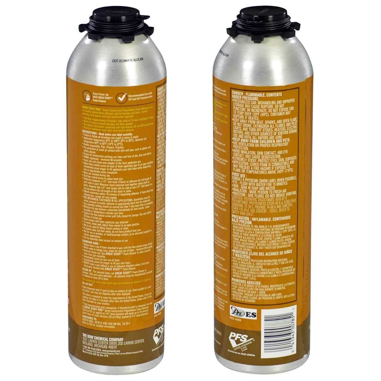GREAT STUFF PRO Wall & Floor Adhesive is a heavy-duty adhesive specially formulated to bond subfloors, drywall, paneling, foam panels and most construction materials. Better than traditional adhesives because of its excellent bonding power on dry, damp and even frozen lumber, GREAT STUFF PRO Wall & Floor Adhesive provides a fast-grab tack and long-term high-strength bond. It bonds to lumber, plywood, particle board, masonry, drywall, concrete and foam panels. It is ideal for anchoring, joining and stabilizing insulated concrete forms and structural insulated panels. (GREAT STUFF PRO Gaps & Cracks Insulating Foam Sealant can also be used to seal gaps in the forms and prevent leakage of the fresh concrete during the pouring stage.) GREAT STUFF PRO Wall & Floor Adhesive is cream in color and is easy to apply in various weather conditions.